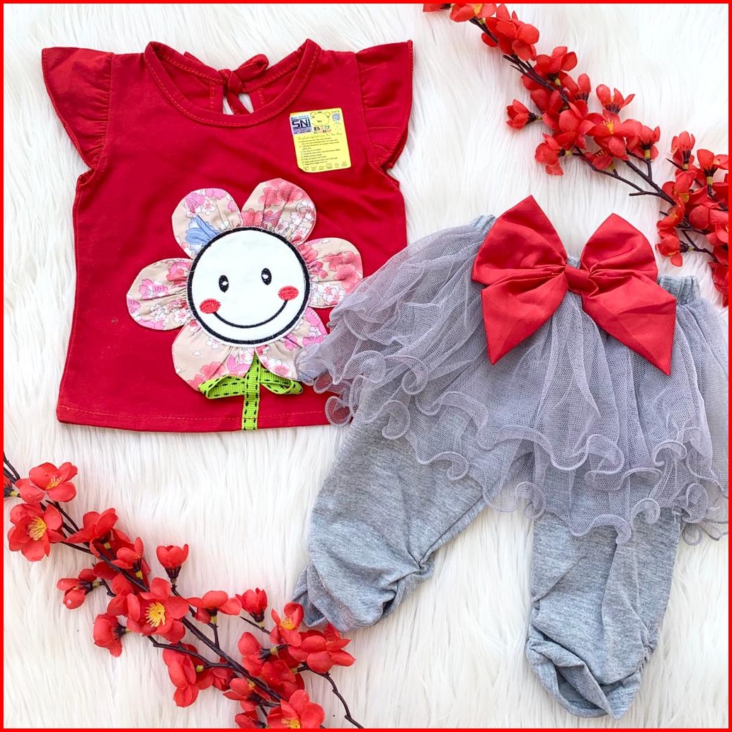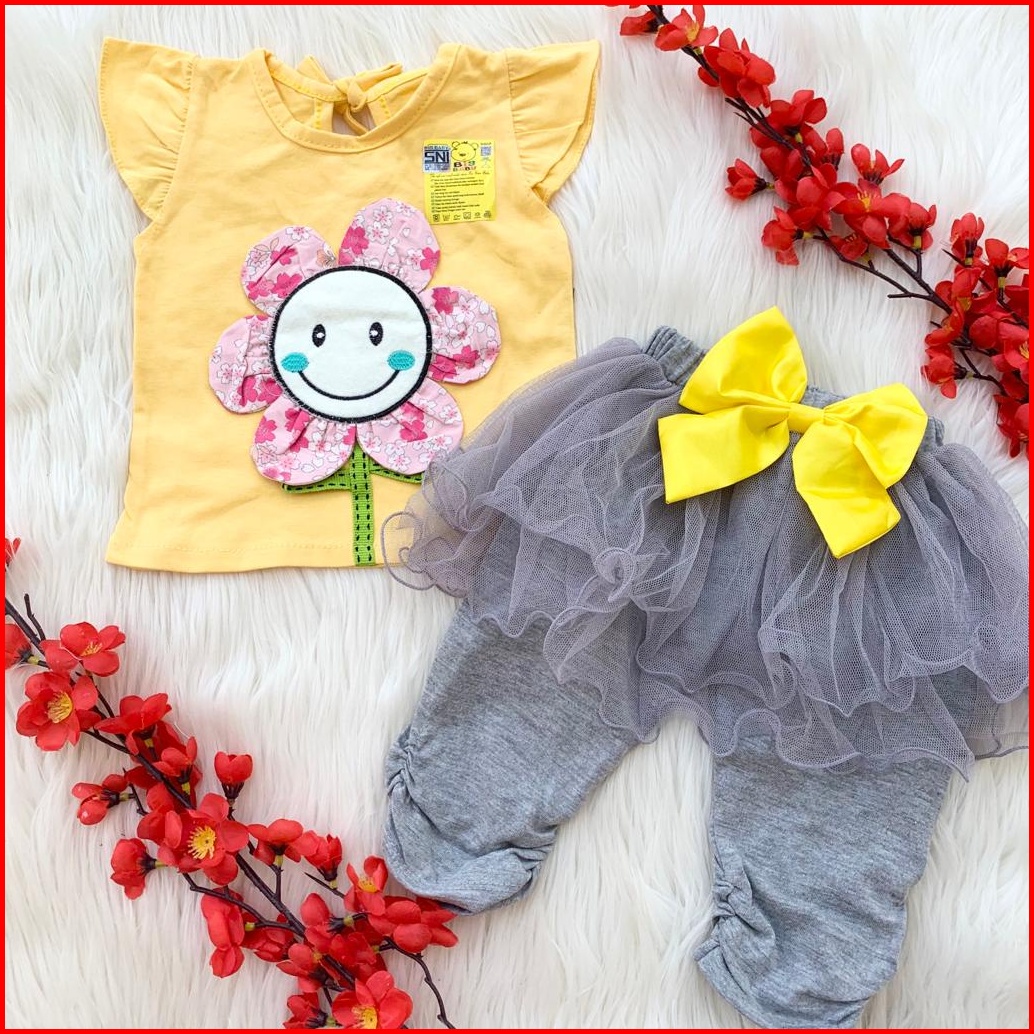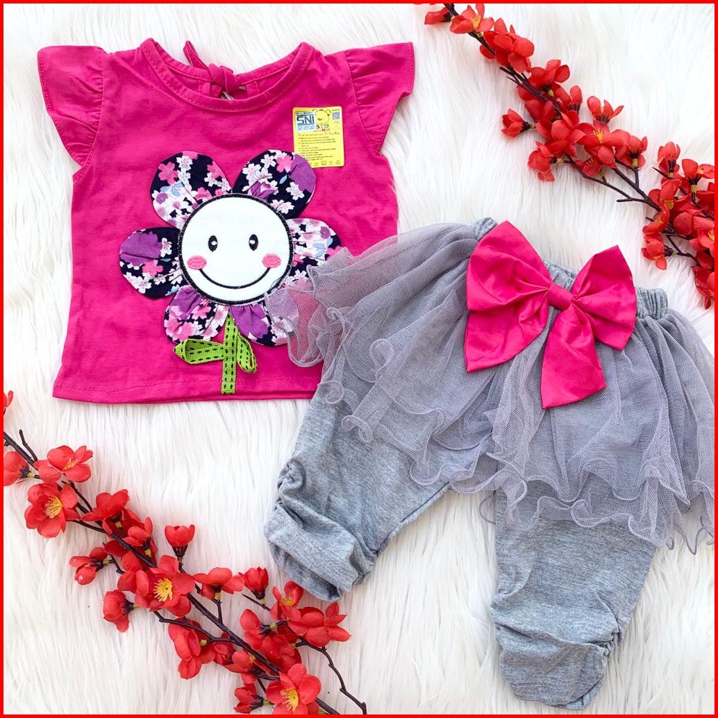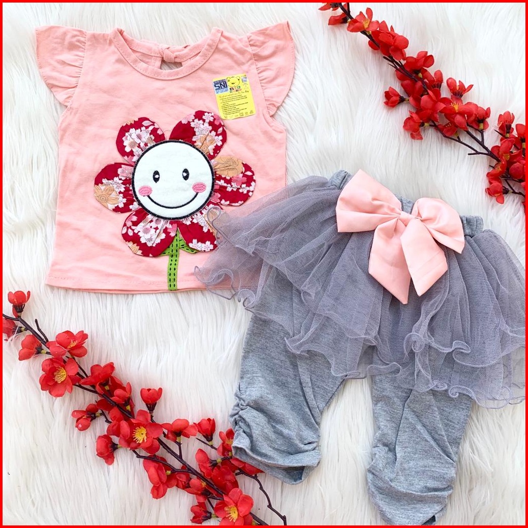 Baju Setelan Kaos Celana Tutu Lembut Lucu Fashion Anak Bayi Cewek Perempuan Baby Girl Murah -sun