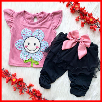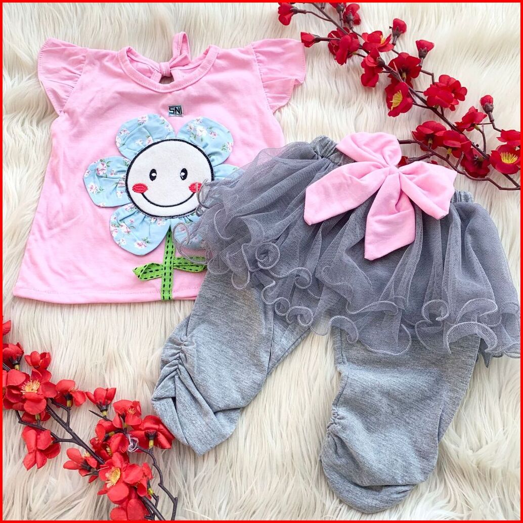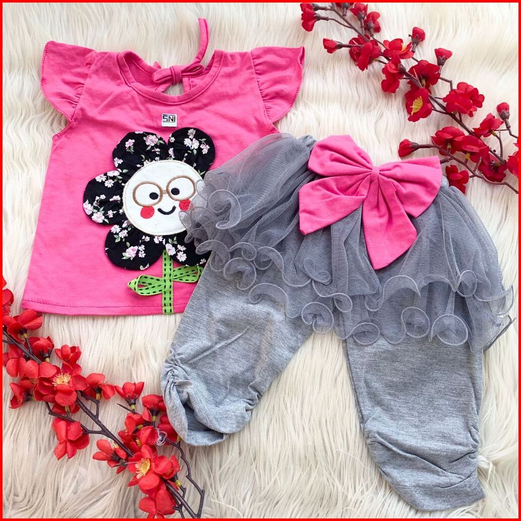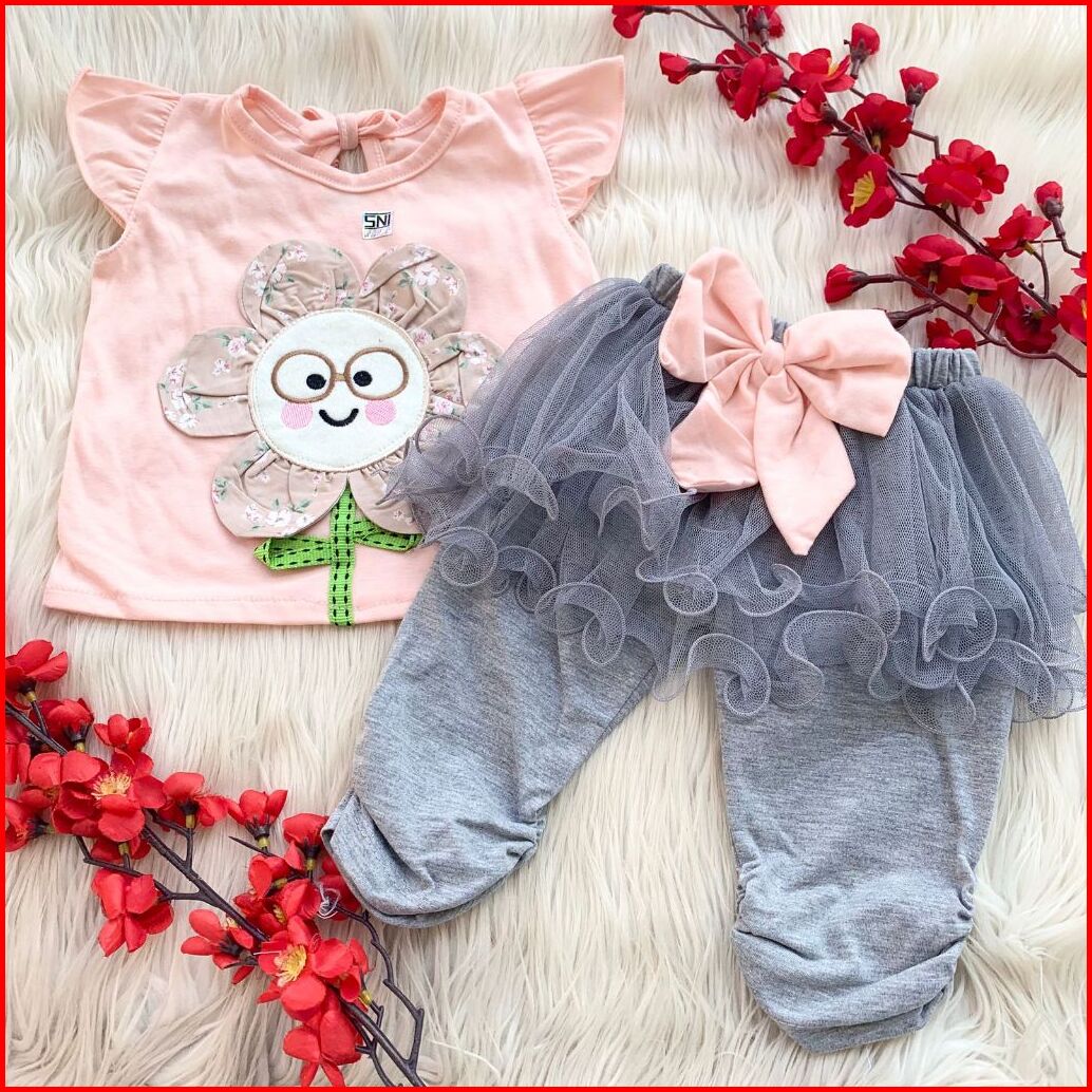 Baju Setelan Kaos Celana Tutu Lembut Lucu Fashion Anak Bayi Cewek Perempuan Baby Girl Murah -sun