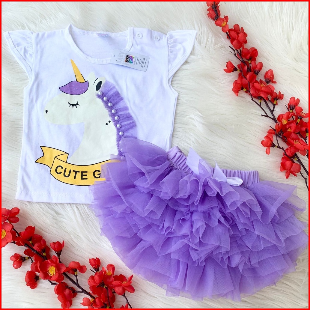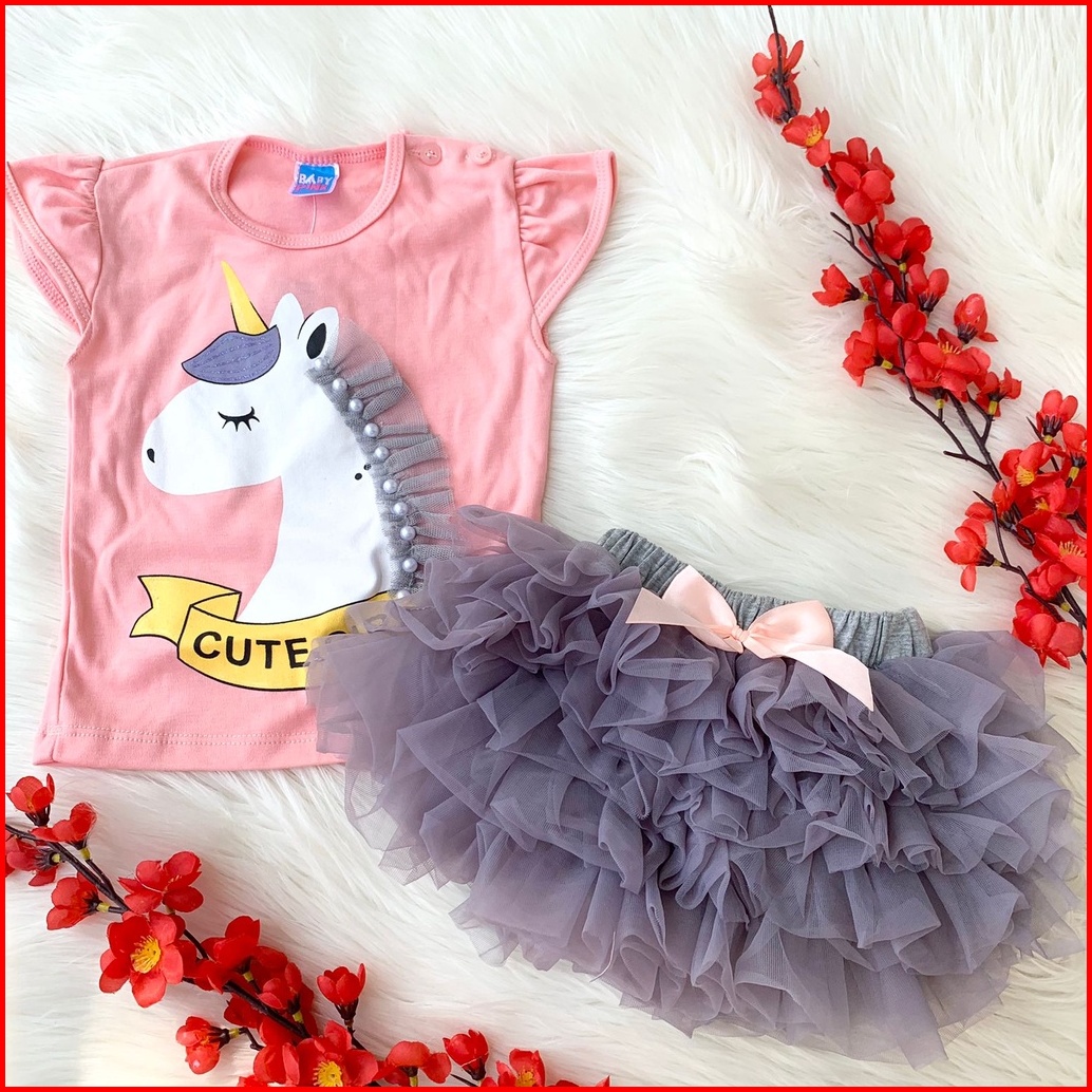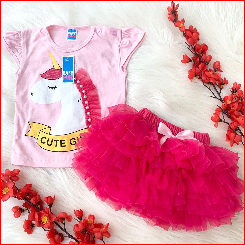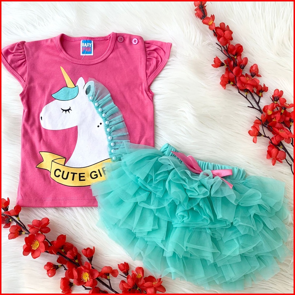 Setelan Baju Kaos Rok Bandana Lucu Pergi Hangout Fashion Anak Bayi Cewek Perempuan Baby Girl -uni