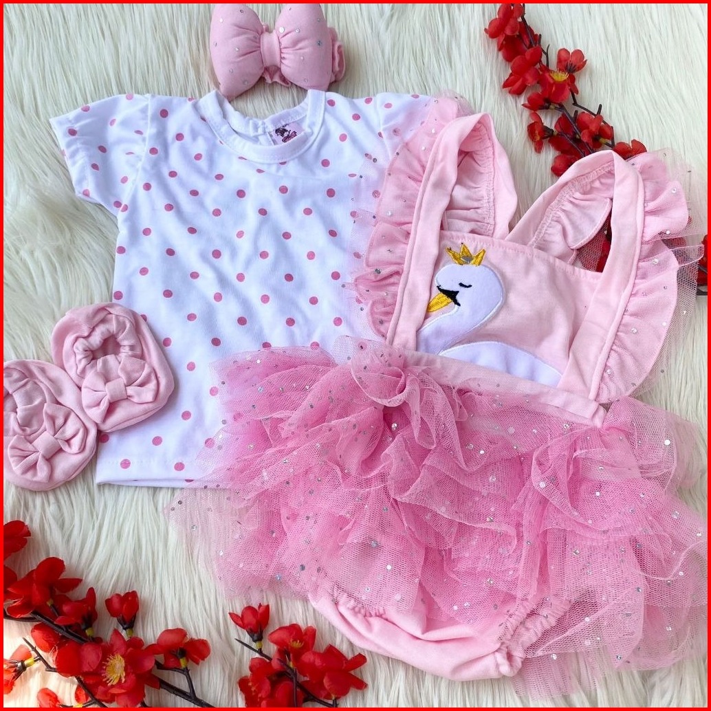 Baju Setelan Kaos Overall Bandana Sepatu Cantik Pergi Jalan Lucu Fashion Anak Bayi Cewek Perempuan Murah Tsu