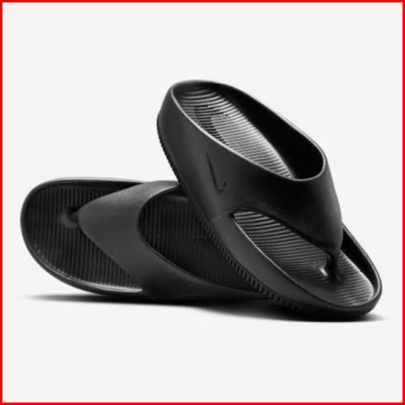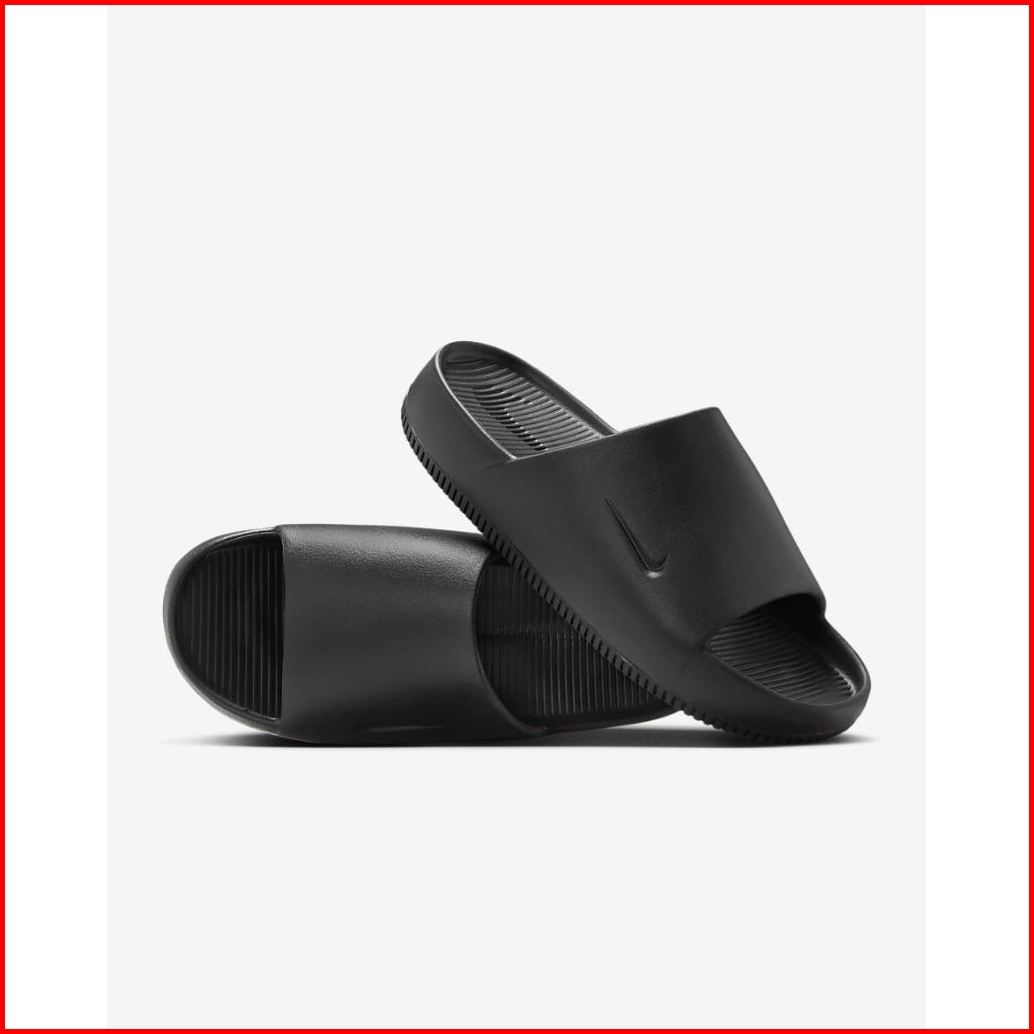 Sandal Calm Slide Black Swoos Logo Embos Kulit Sintetis