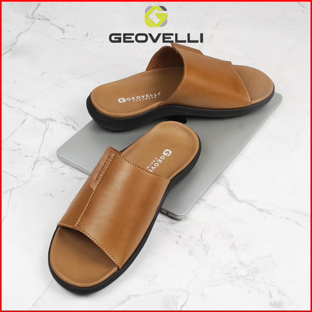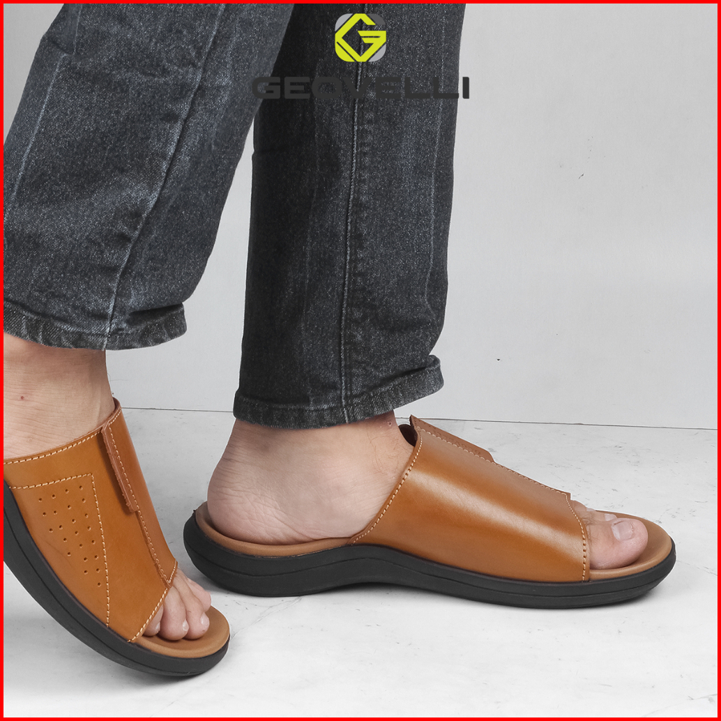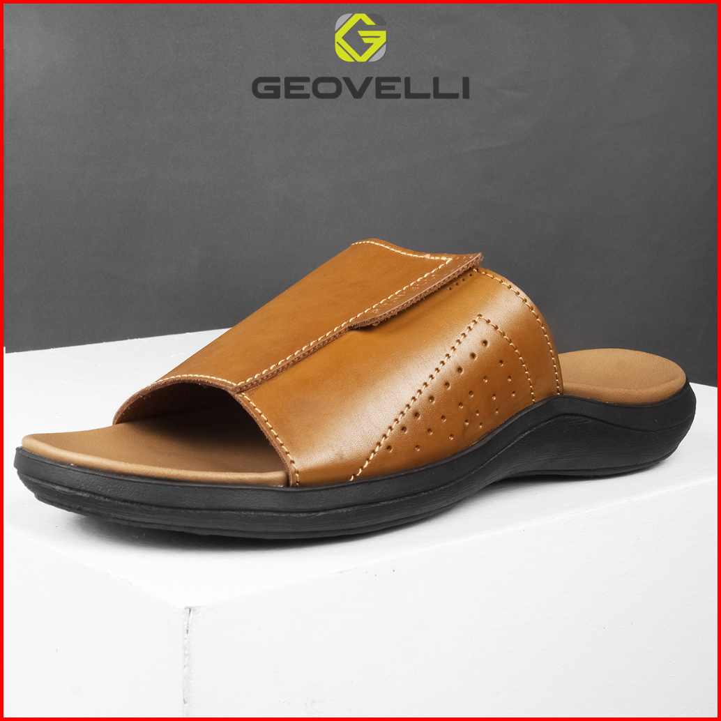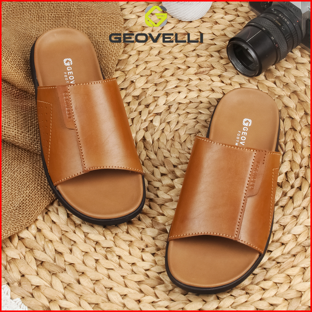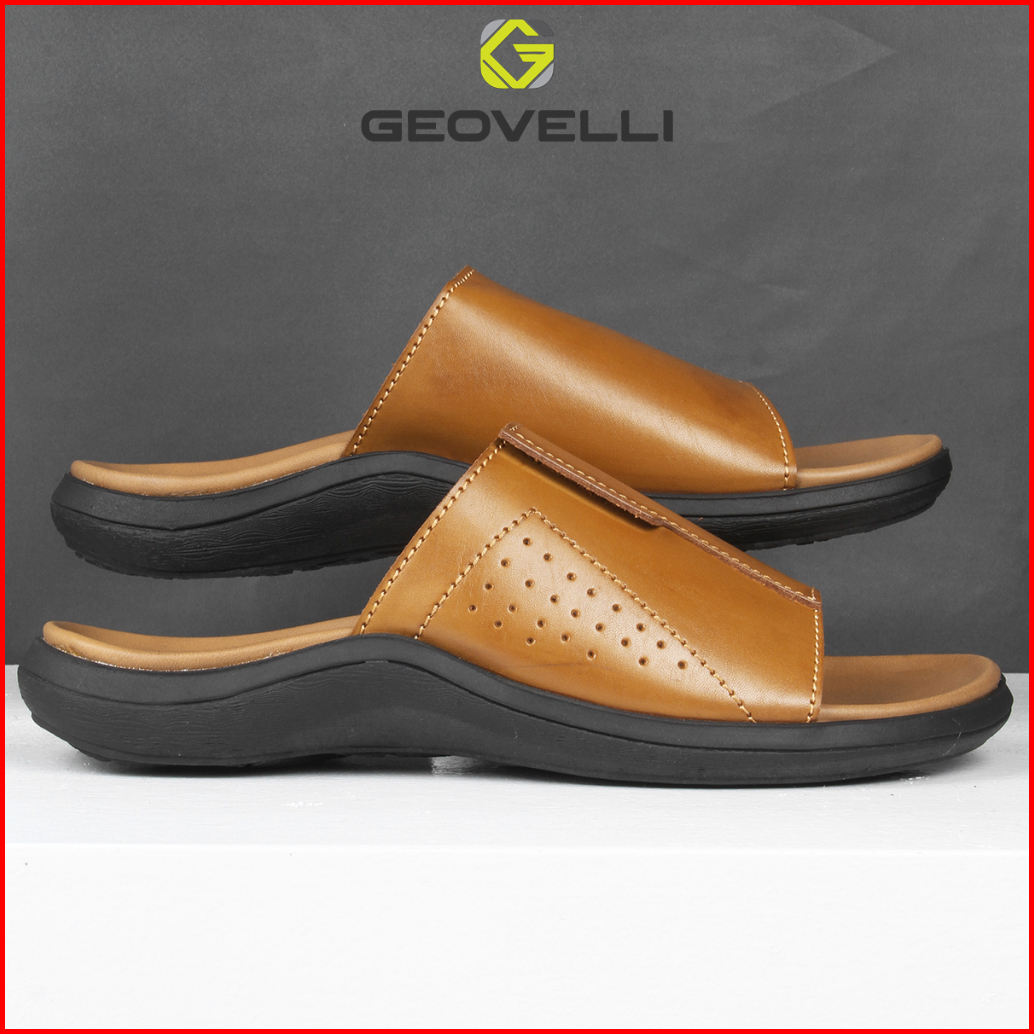 Sandal Pria Kekinian Geovelli Premium Original Sandal Kulit Pria Kualitas Lokal - G1992 Tan