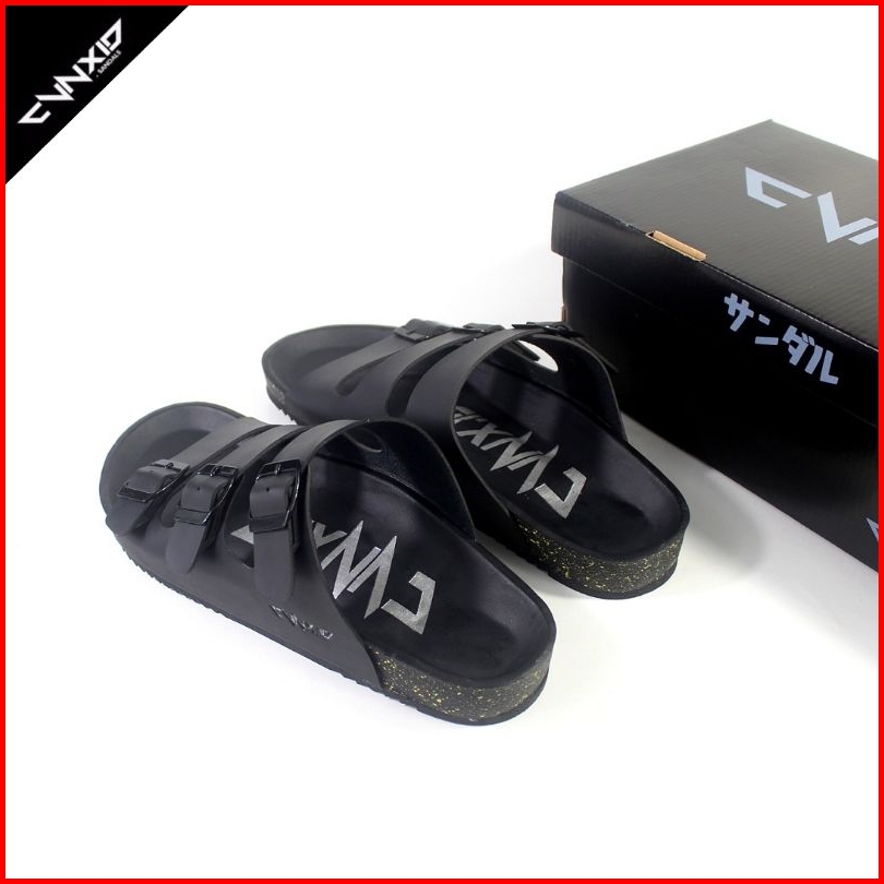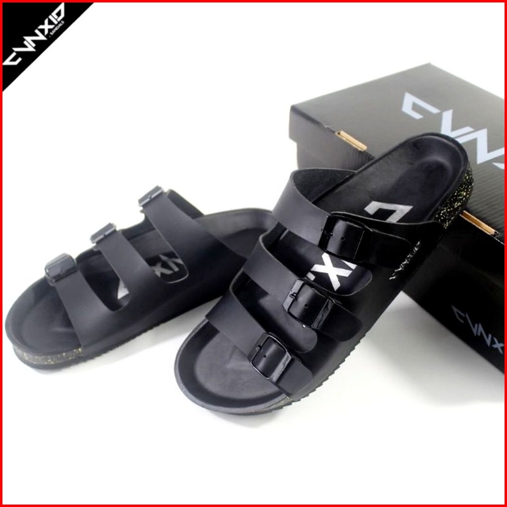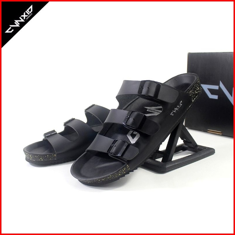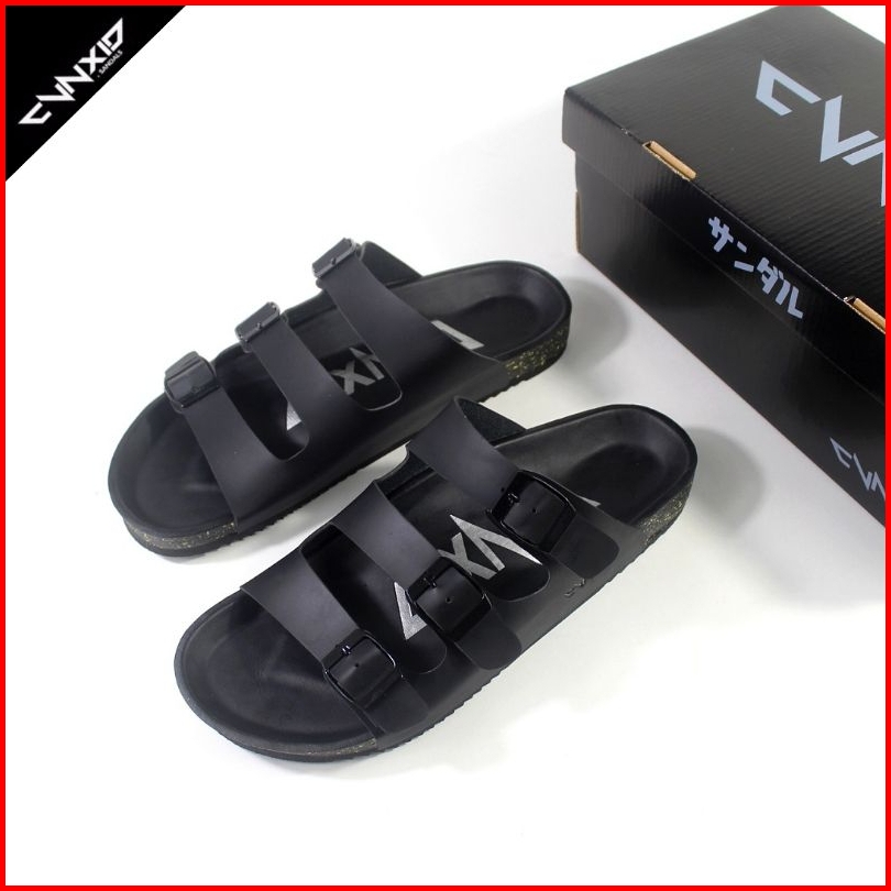 Cvnxid Sendal Pria Dewasa Sandal Selop Casual Original Terbaru Strap Tiga - Hitam Stylish