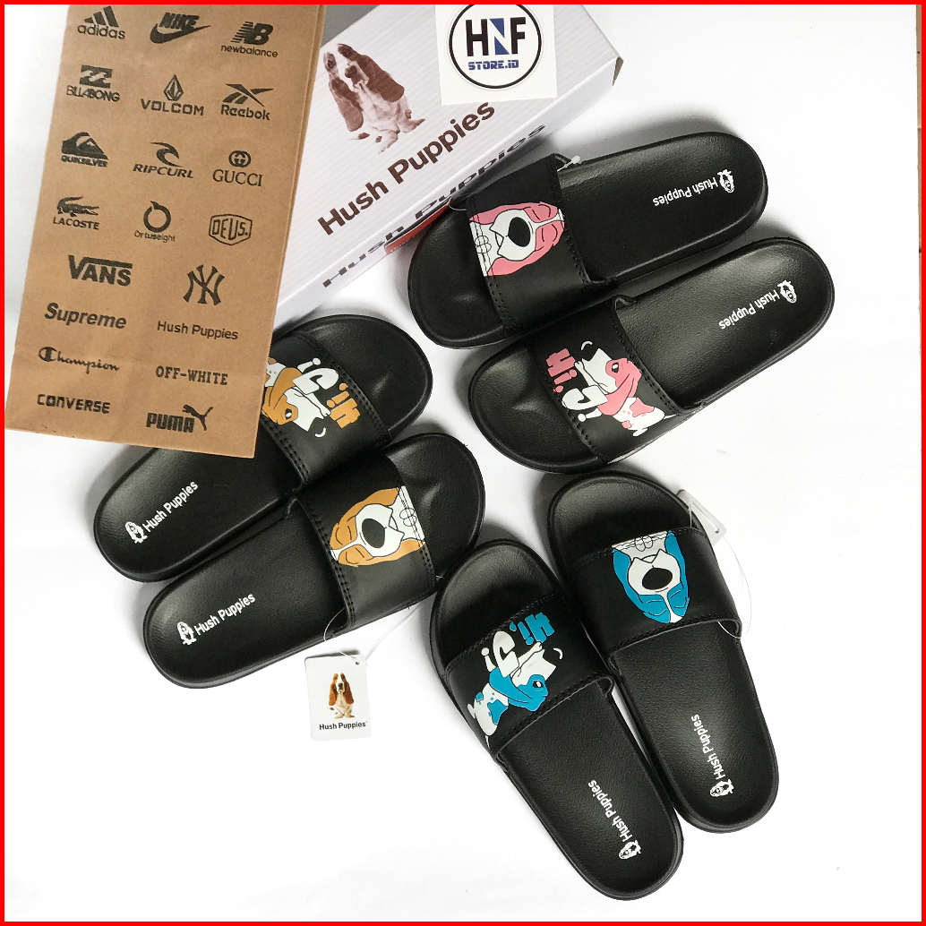 Sandal Hush Puppies Motif Terbaru Double Logo Sendal Slide Slop Pria Wanita