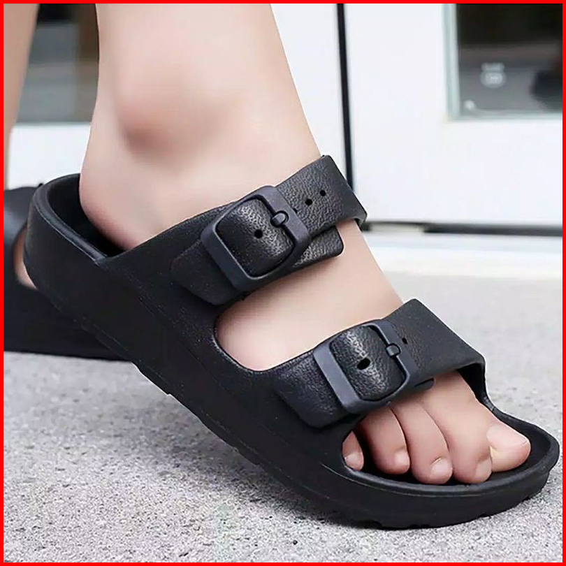 Delistminiso Sendal Wanita Kekinian Unisex Slippers Sandal Wanita Dan Pria Flip-flops Dua Band Fashion Sandal Indoor Dan