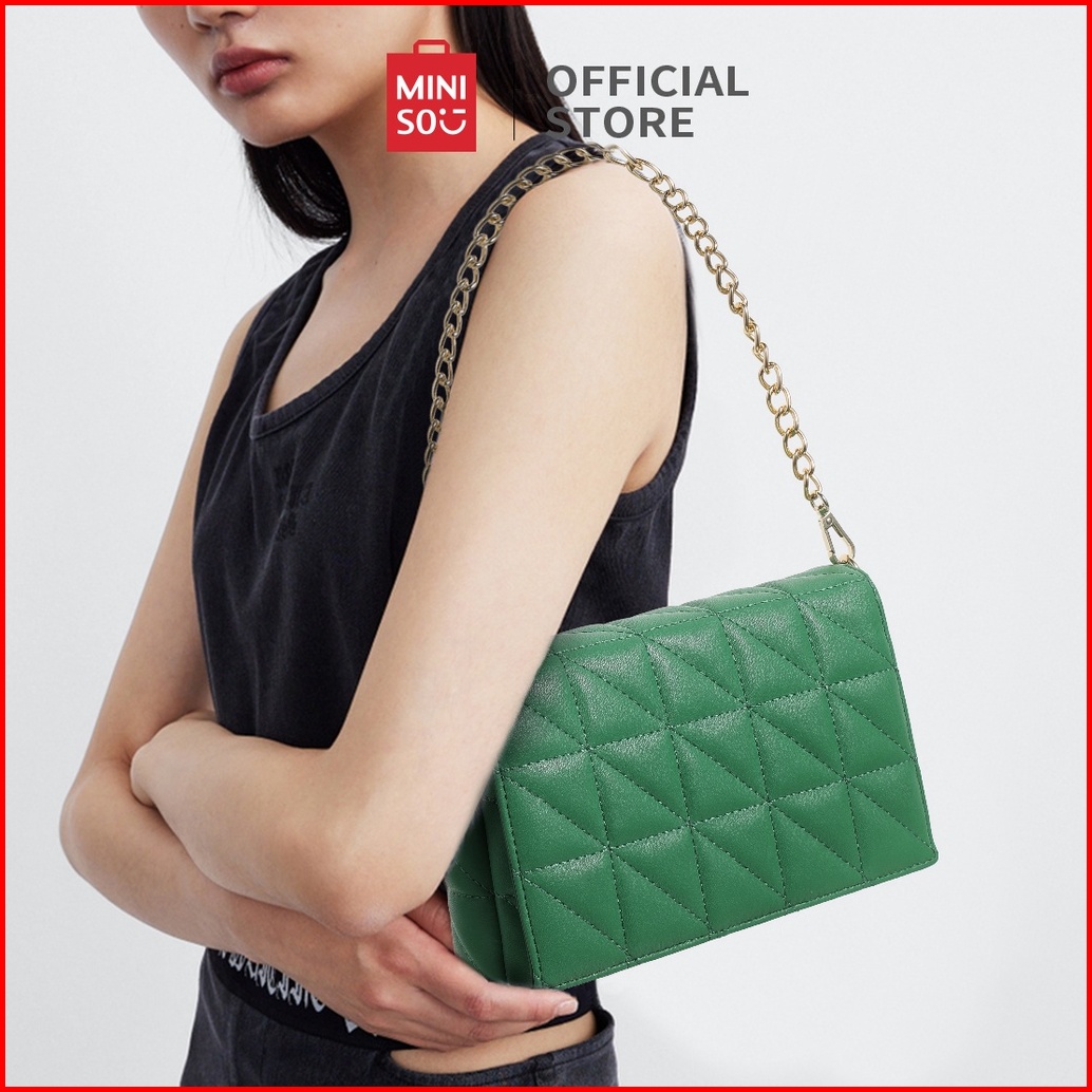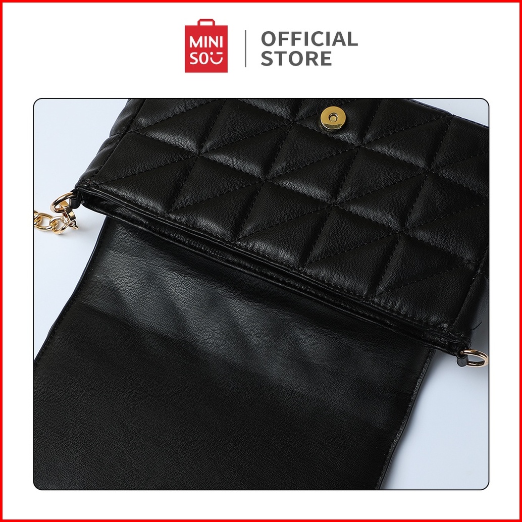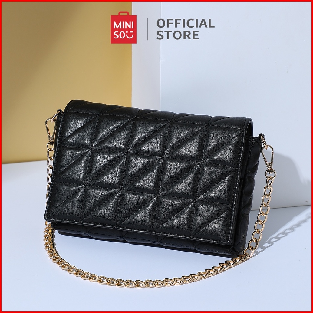 Miniso Tas Bahu Slingbag Tas Pundak Tas Selempang Persegi Panjang Retro Lembut Dengan Flap Top Tas Hitampvc Mode Bangsaw