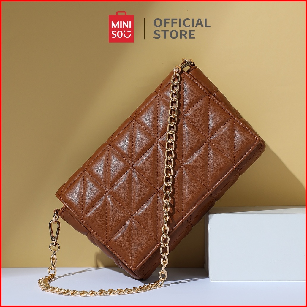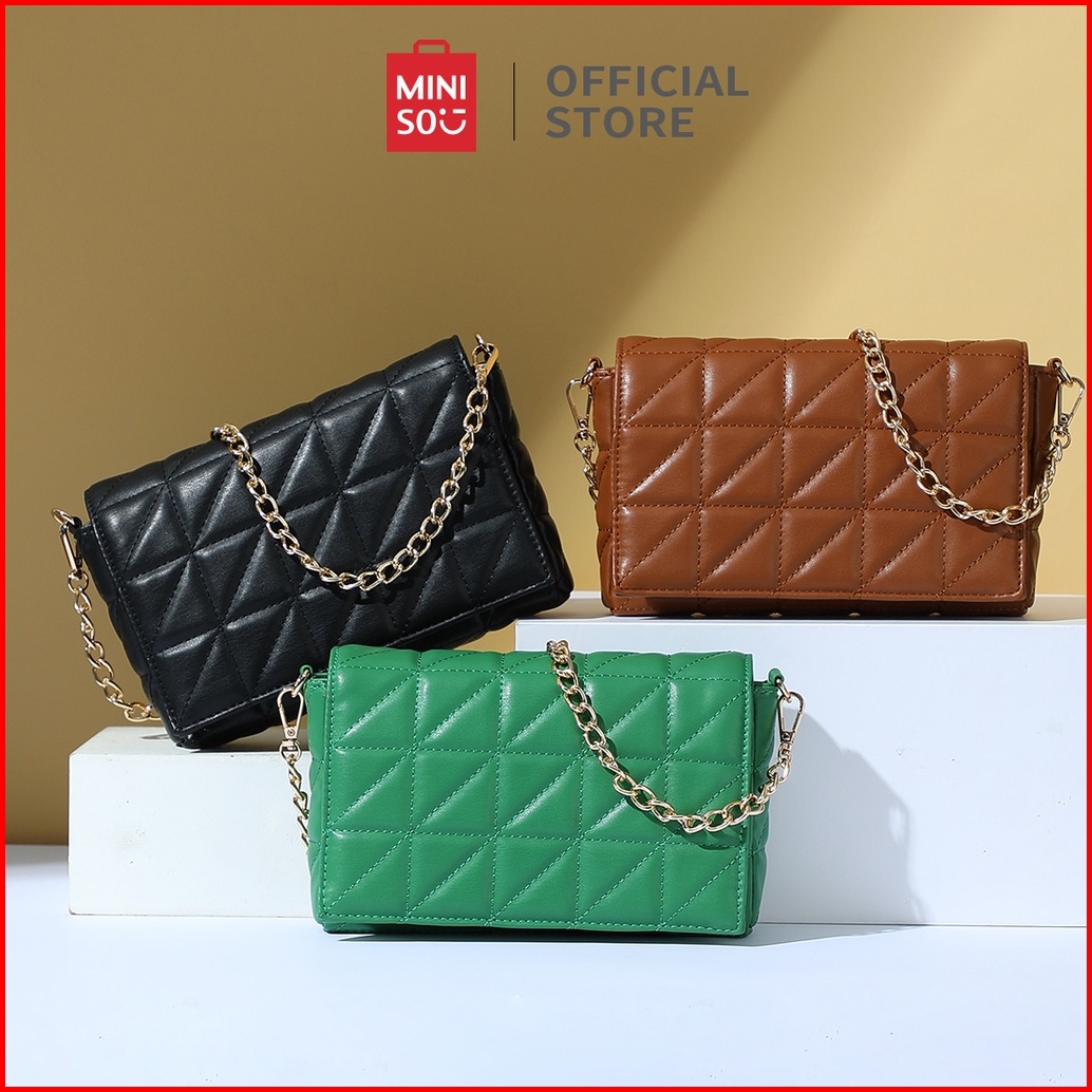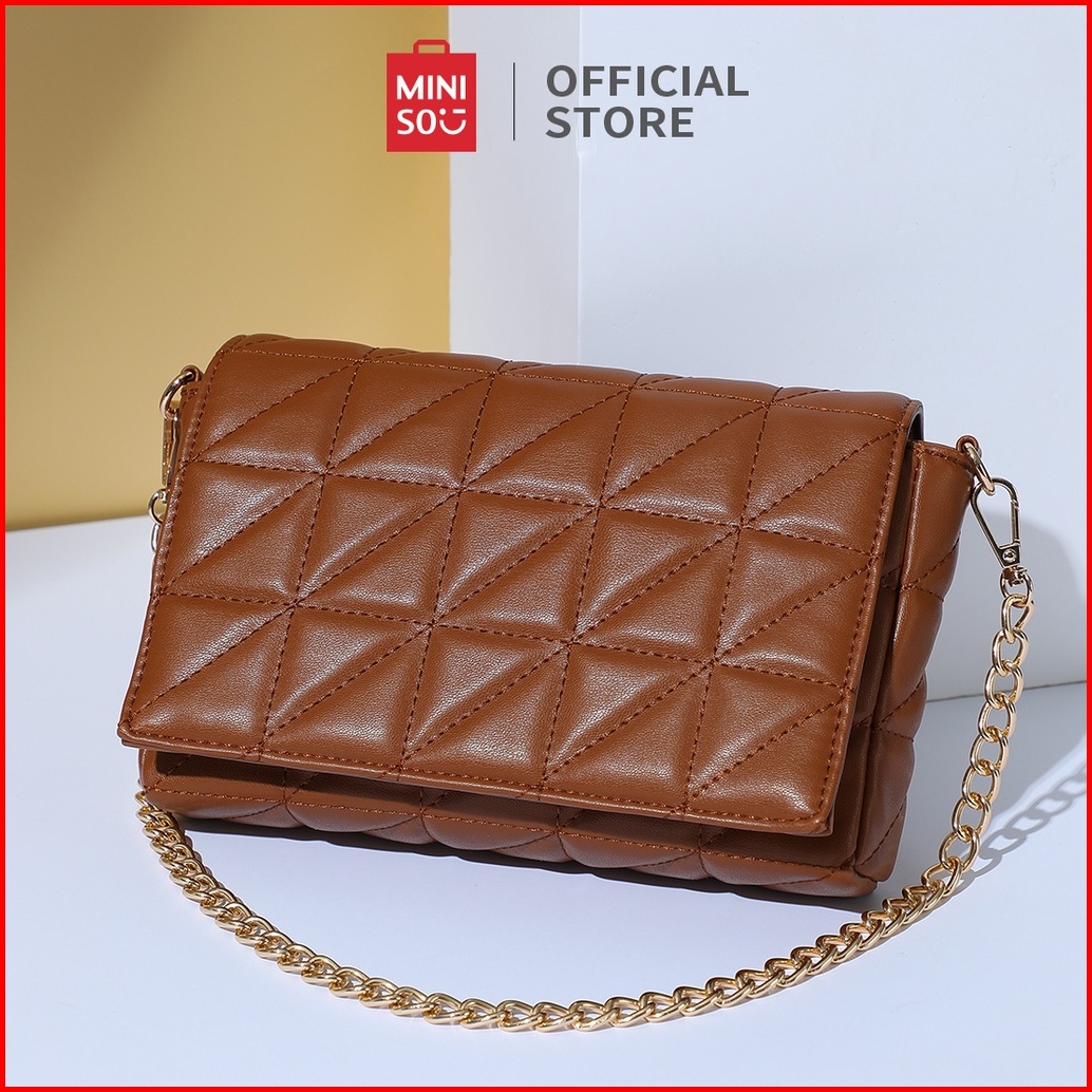 Miniso Tas Bahu Slingbag Tas Pundak Tas Selempang Persegi Panjang Retro Lembut Dengan Flap Top Tas Hitampvc Mode Bangsaw