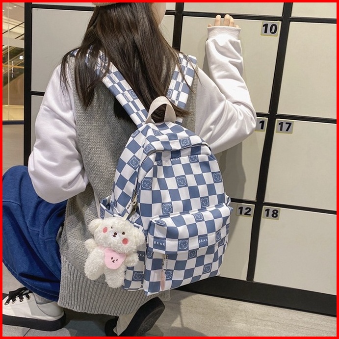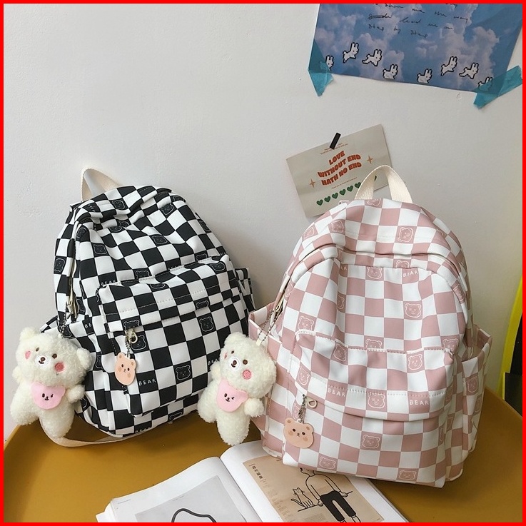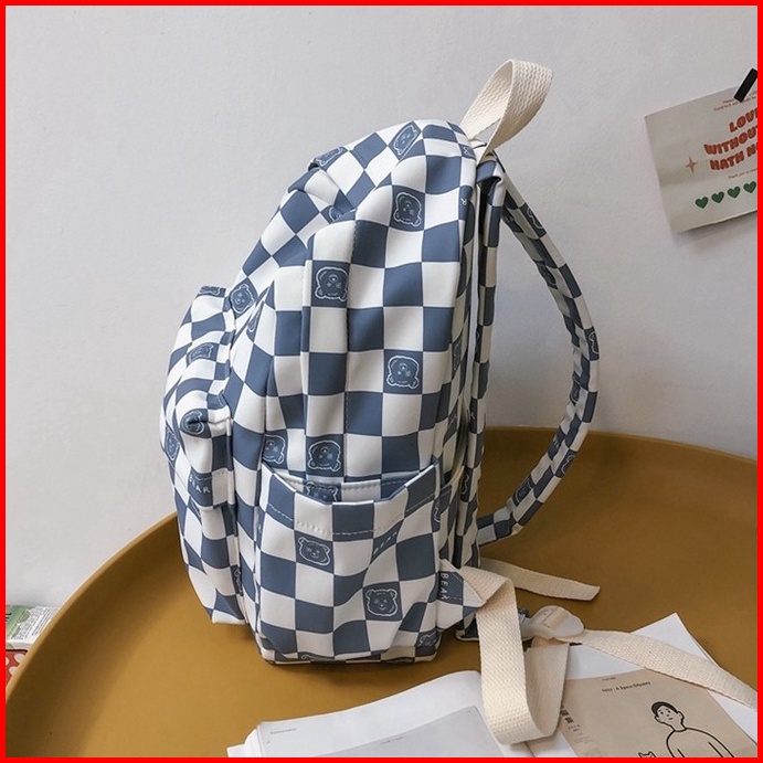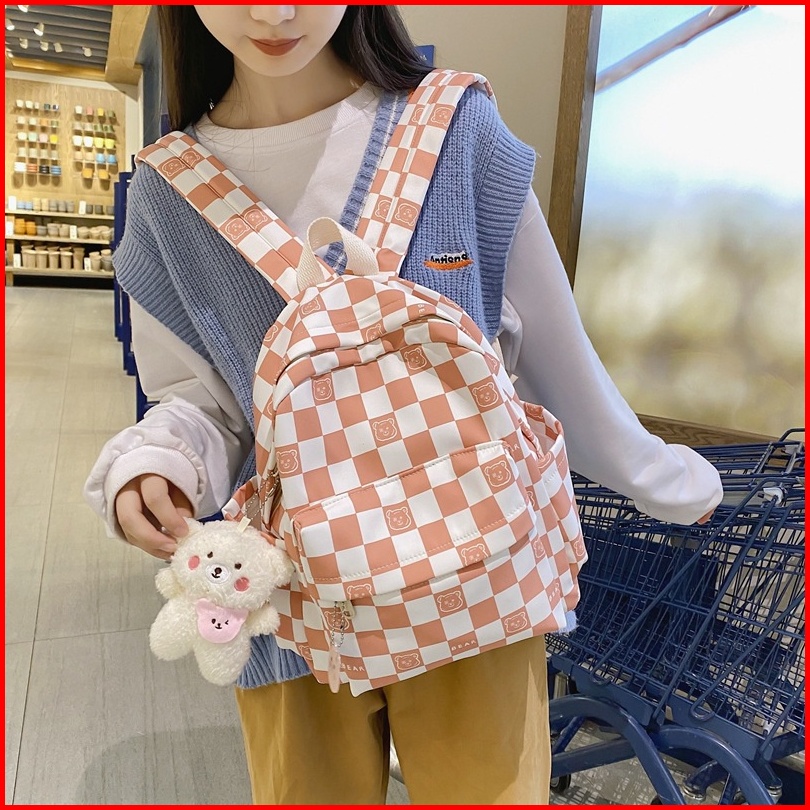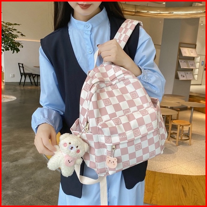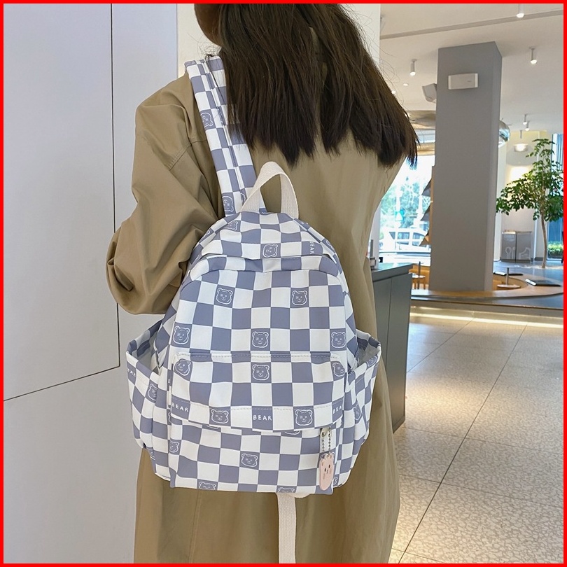 Mismi Darcy Bag Tas Ransel Wanita Korean Checker Style Backpack Sekolah Perempuan Stylish - 24d