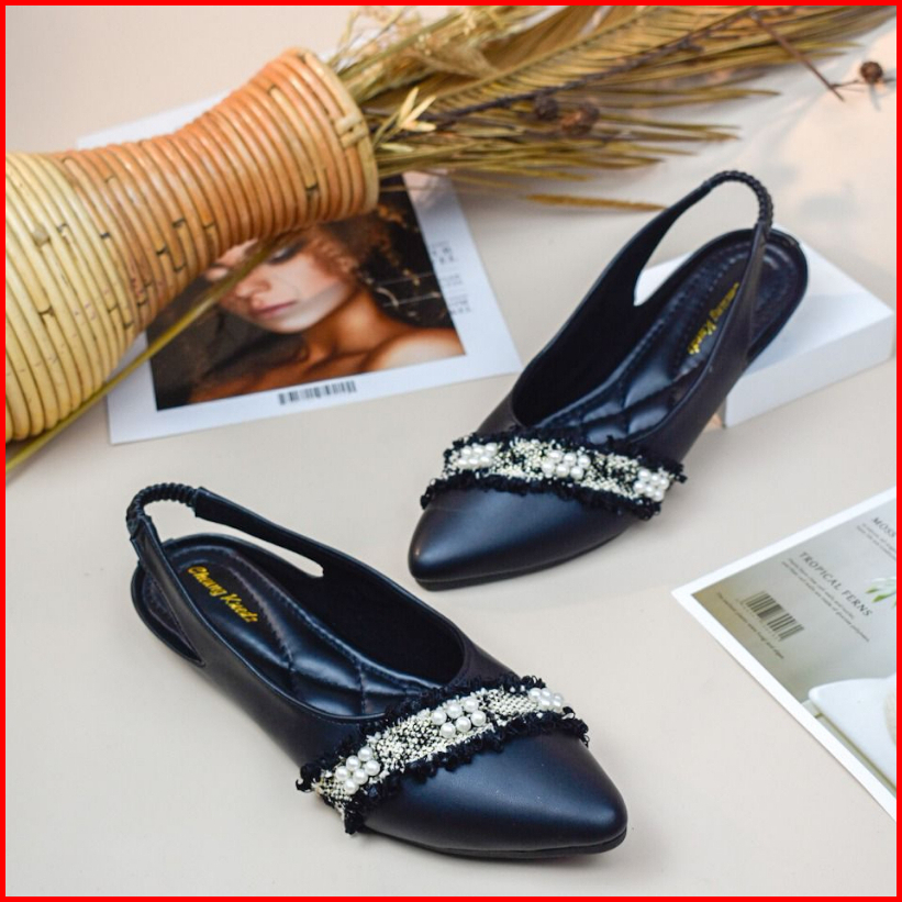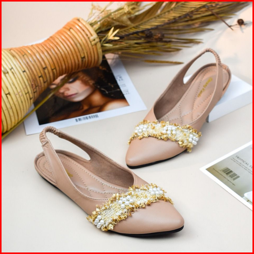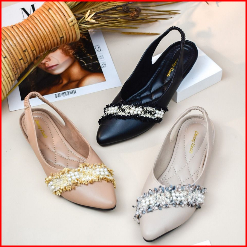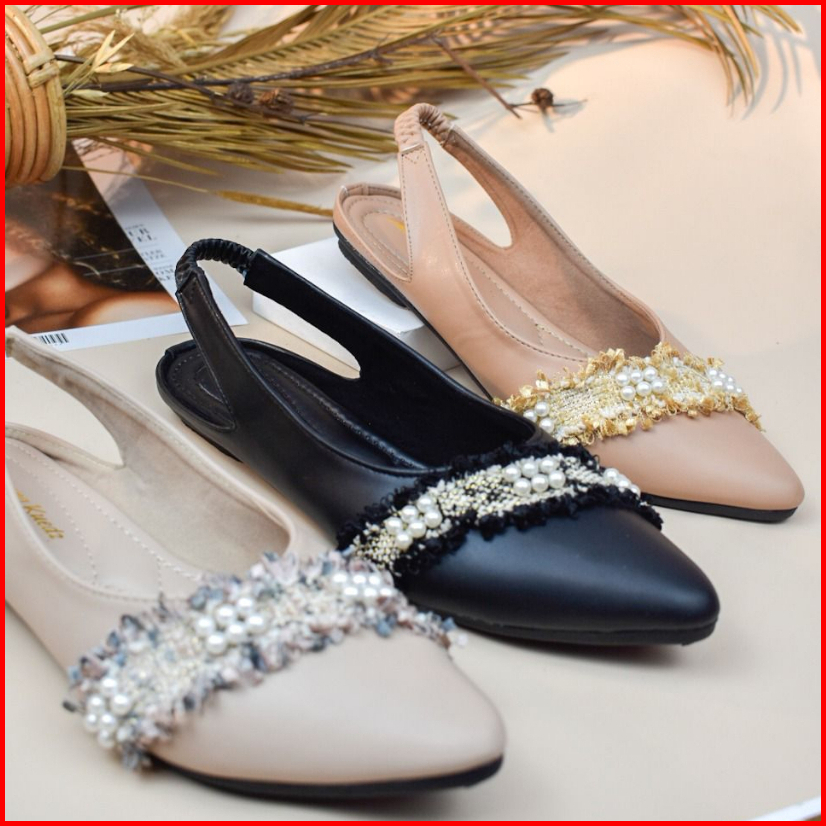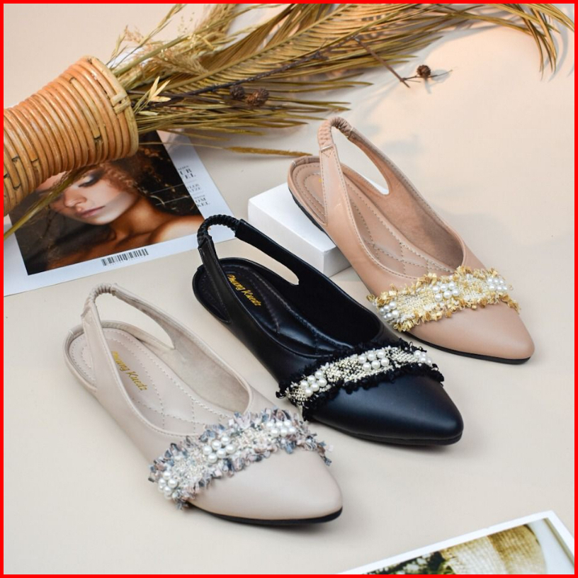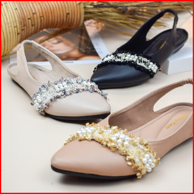 Cheung Kuedz Prikiniw Sepatu Flatshoes Wanita Tali Karet Belakang Sendal