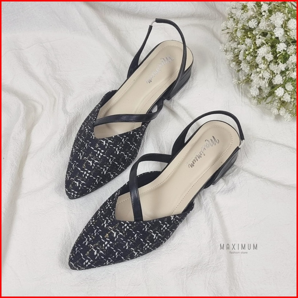 R9 Maximum Jeselin Sandal Mules Wanita Ujung Lancip Tinggi 3cm