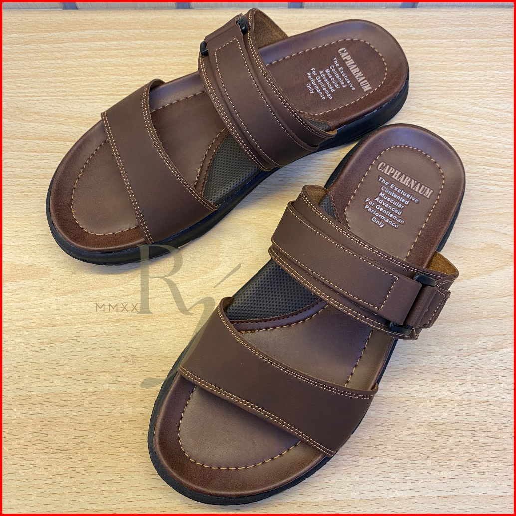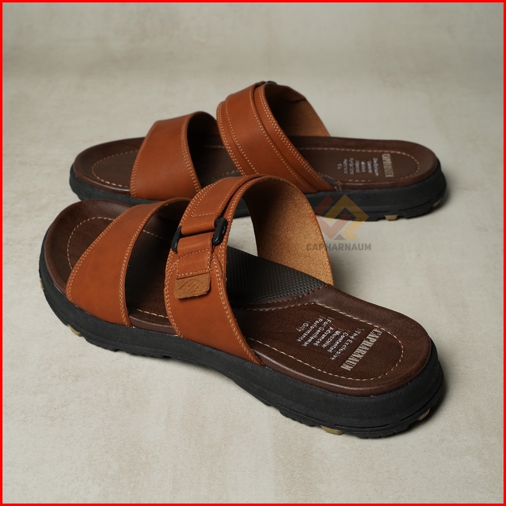 Capharnaum Rambo 201 Sendal Selop Ban 2 Kulit Gesper Sandal Slip On Kasual Pria Kulit Premium