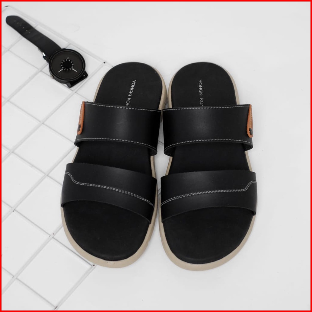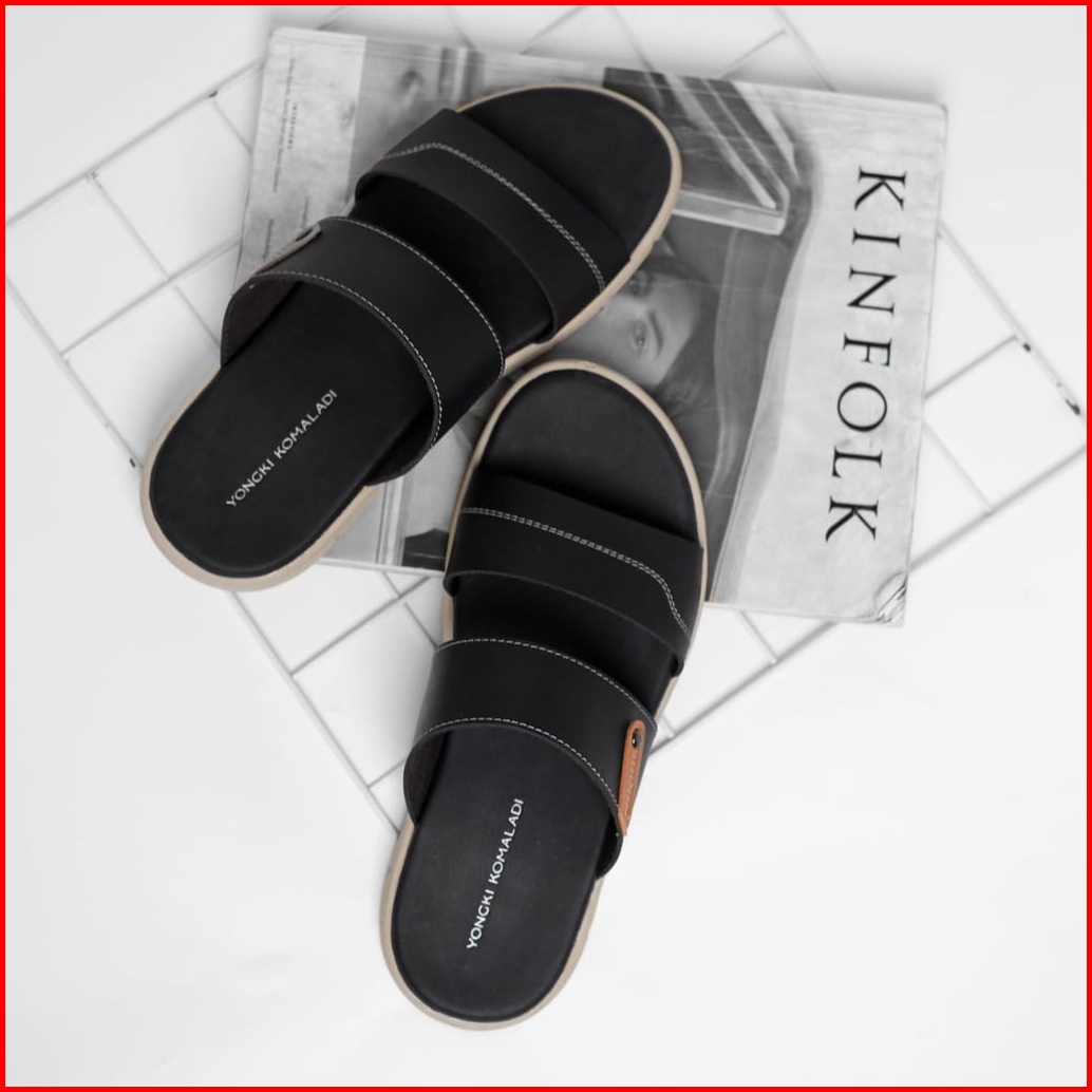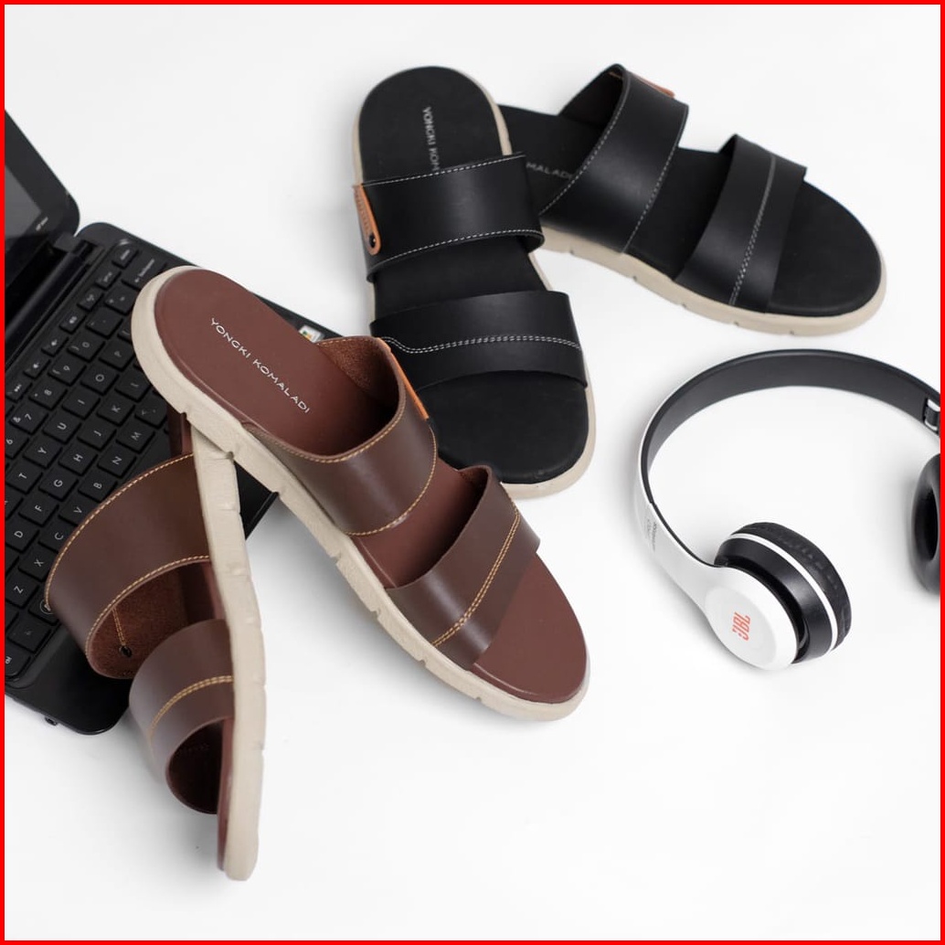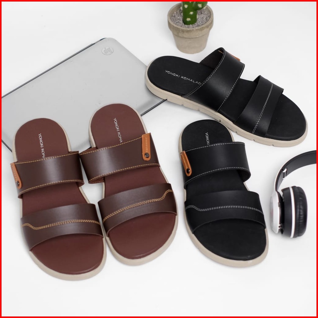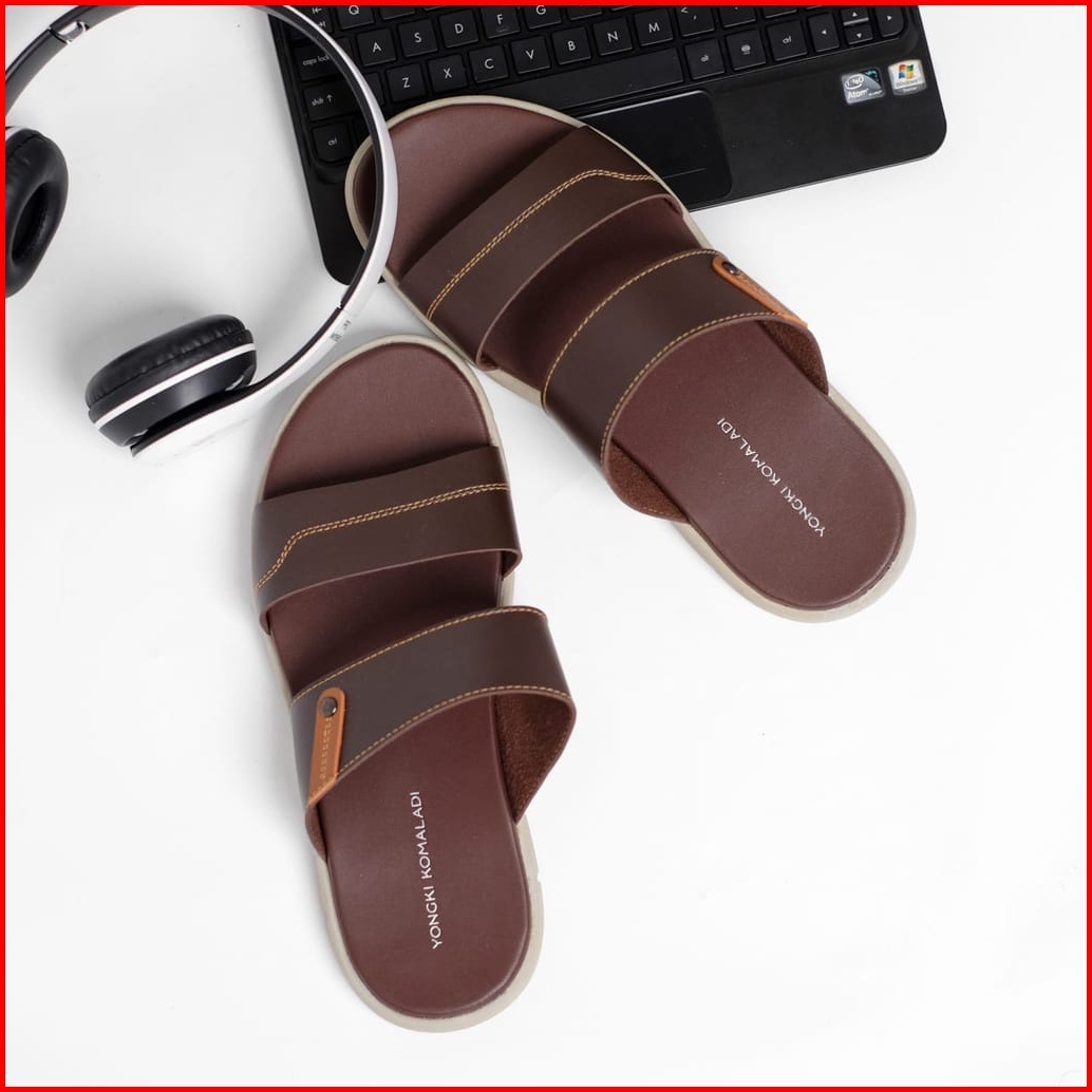 Sandal Kulit Pria Yongki Komaladi Brown Kulit Sapi Asli Original Handmade Kasual Santai