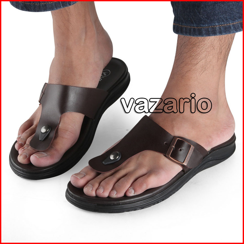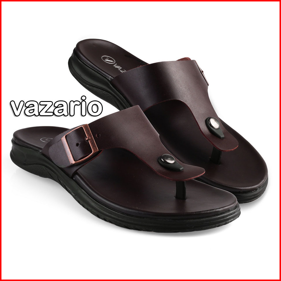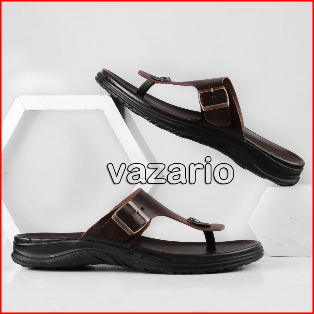 Vazario 38-43 Sandal Slide Pria Original Sandal Pria Terbaru Sandal Kulit Asli Sendal Brown Keren Sendal Pria Casual Sen