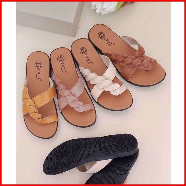 Sandal Kulit Wanita Asli Terbaru Viral Kekinian Fashion Sandal Wanita Teplek