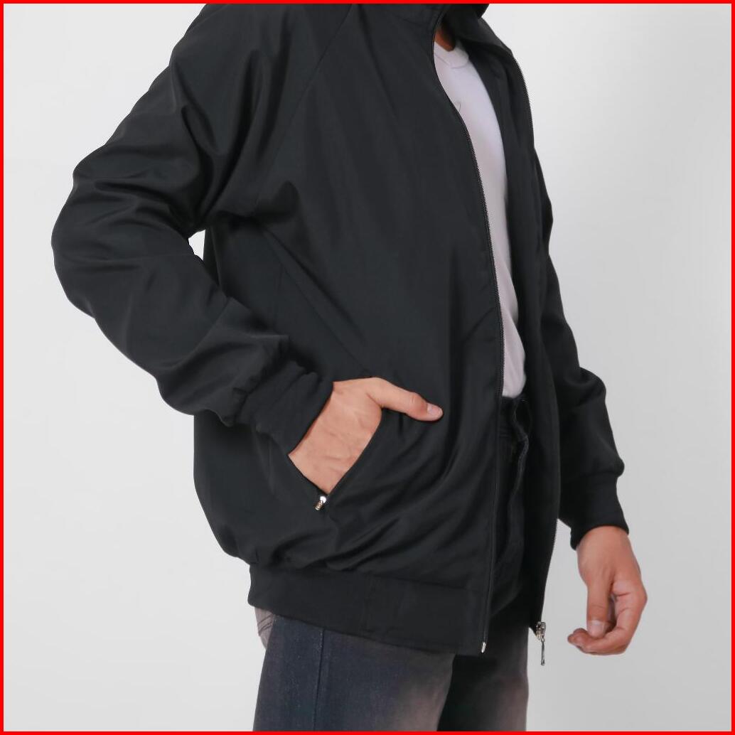 Jaket Parasut Windrunner Olahraga Polos Hitam Pria Wanita