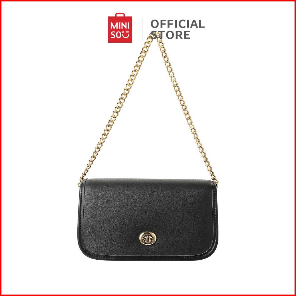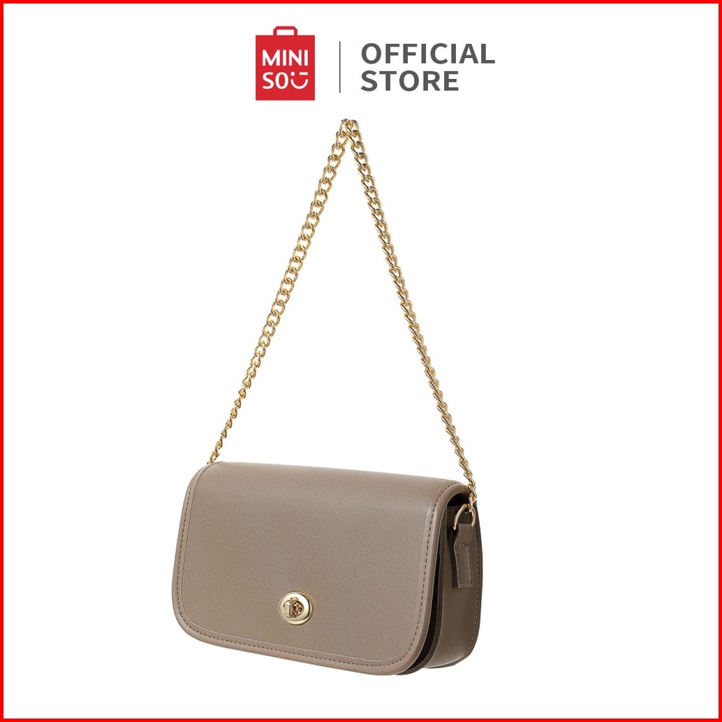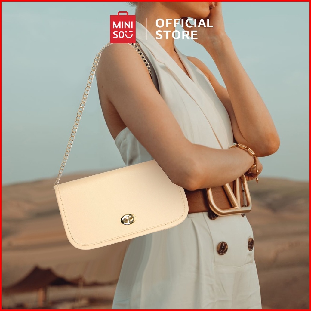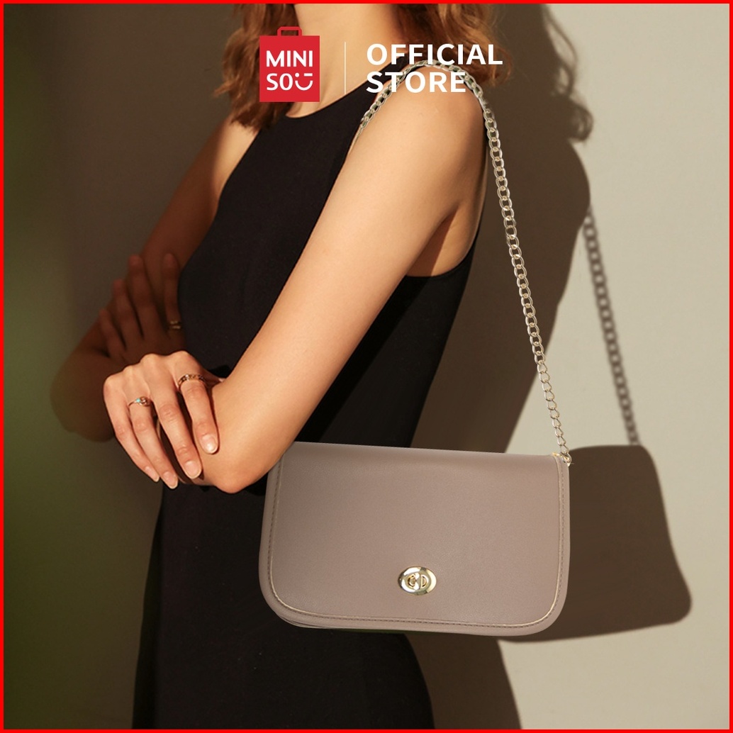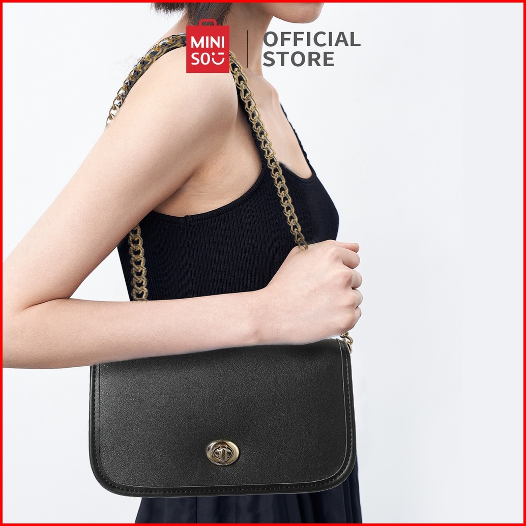 Miniso Tas Pundak Shoulder Bag Tas Selempang Tas Bahu Persegi Panjang Dengan Kunci Putar Tas Rantai Kapasitas Besar