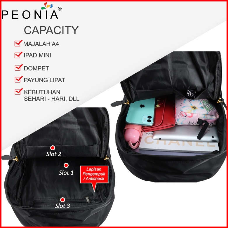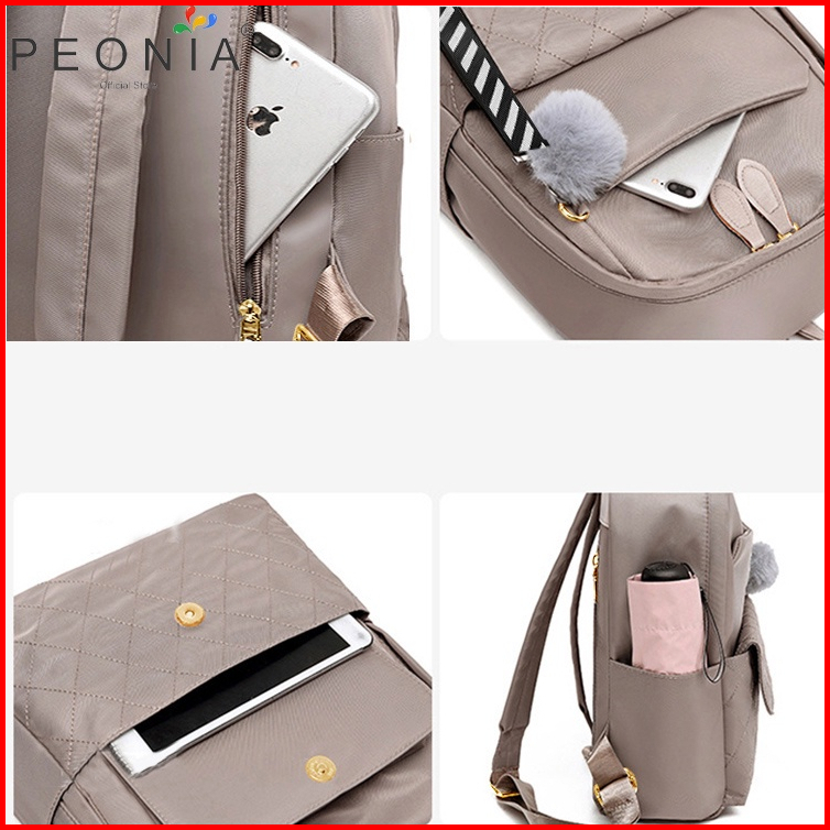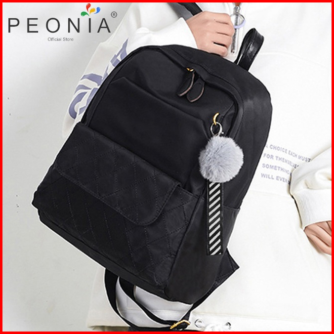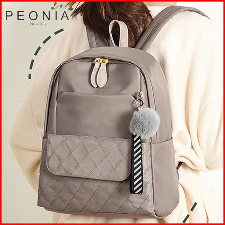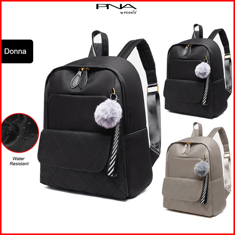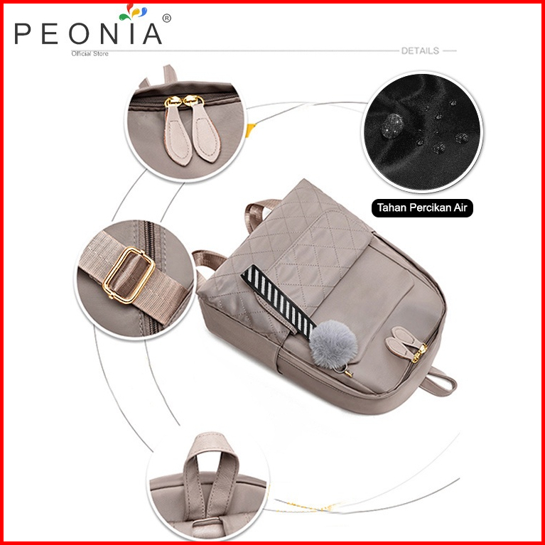 Peonia Pna Donna Pom Water Resistant Tas Ransel Wanita Import Korea Style Besar Wanita Unisex Laptop Backpack Punggung K