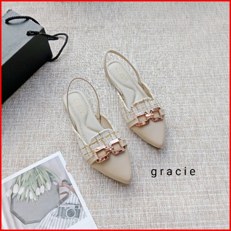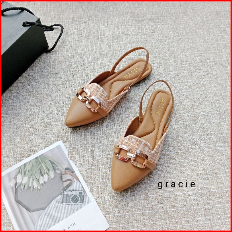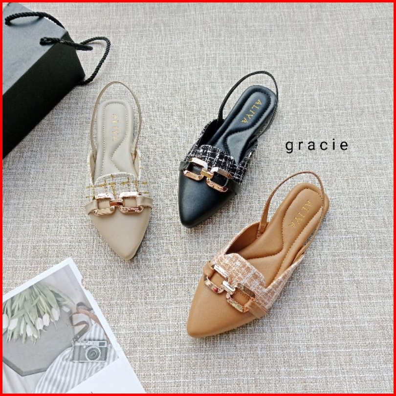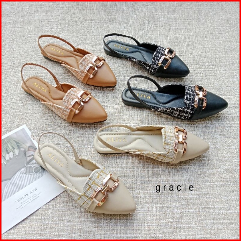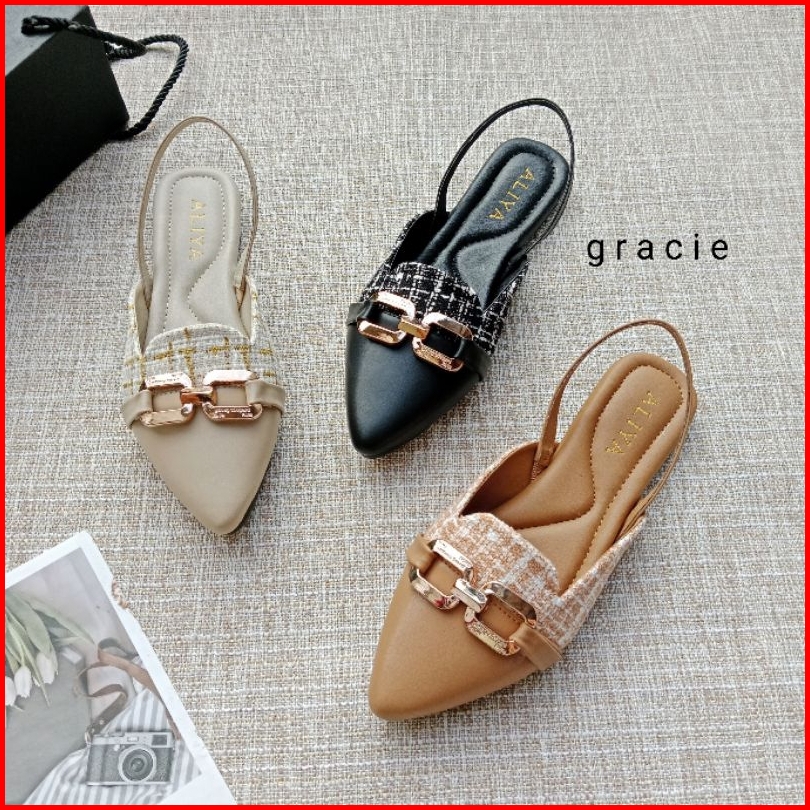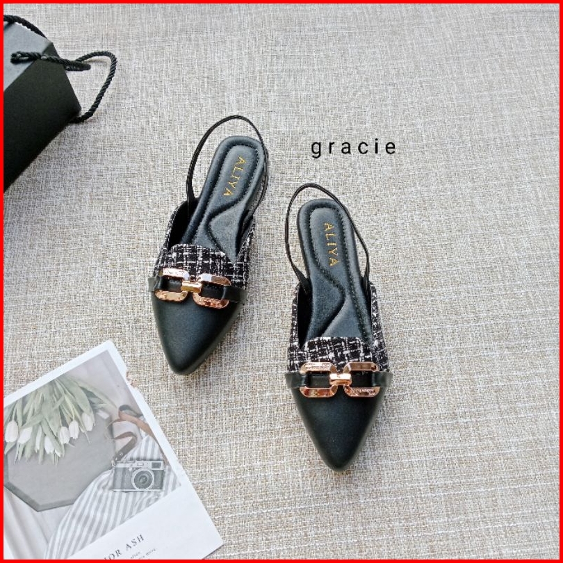 Aliya Gracie Flat Mules Sepatu Sandal Wanita Kanvas Elegan