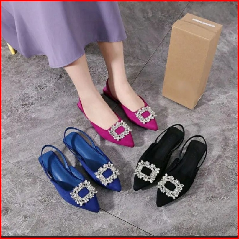 Sandal Heels Wanita Tali Belakang Wedding Shoes Hak 2cm Mules Kekiniann