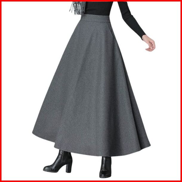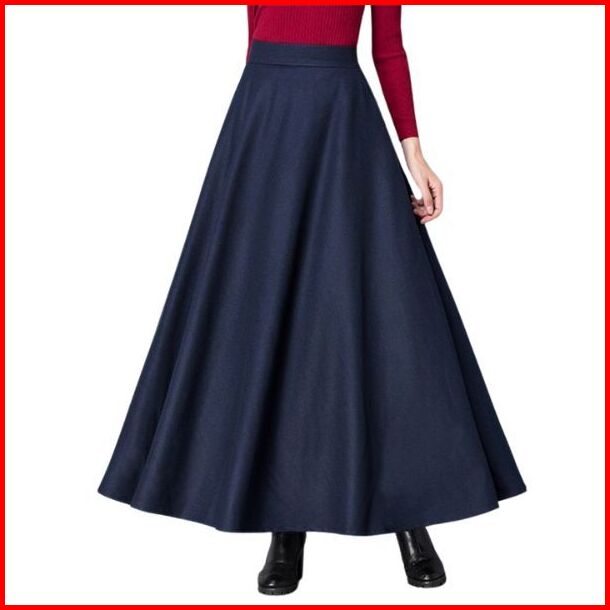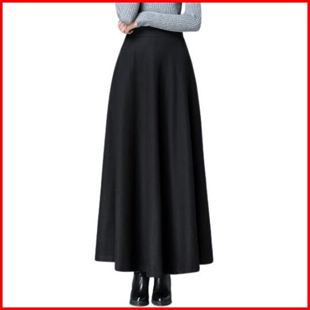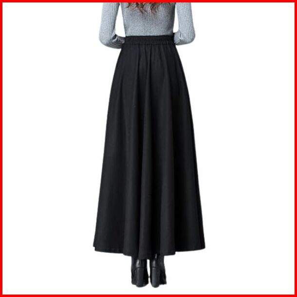 A Lila - Rok Kerja Wanita Waffle Bawahan Rok Hitam Pinggang Karet Model A-line