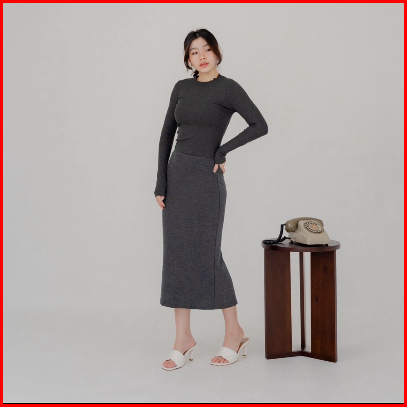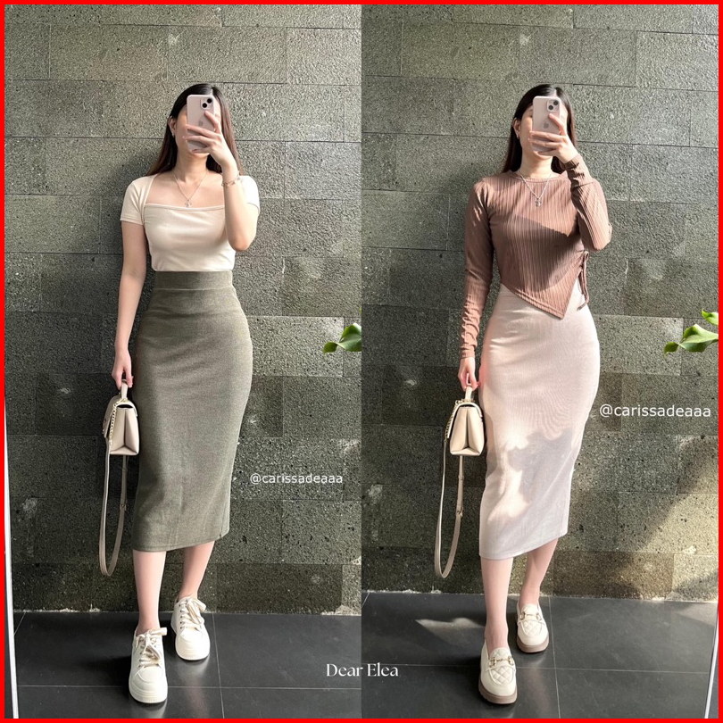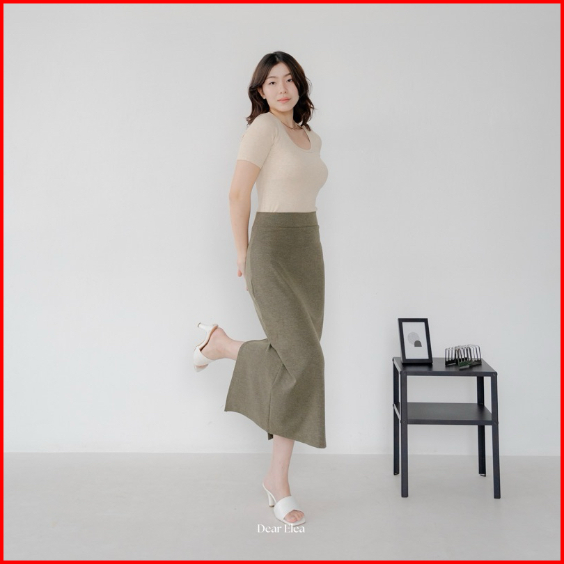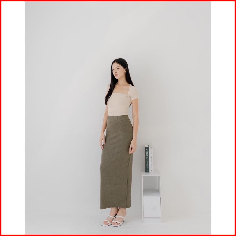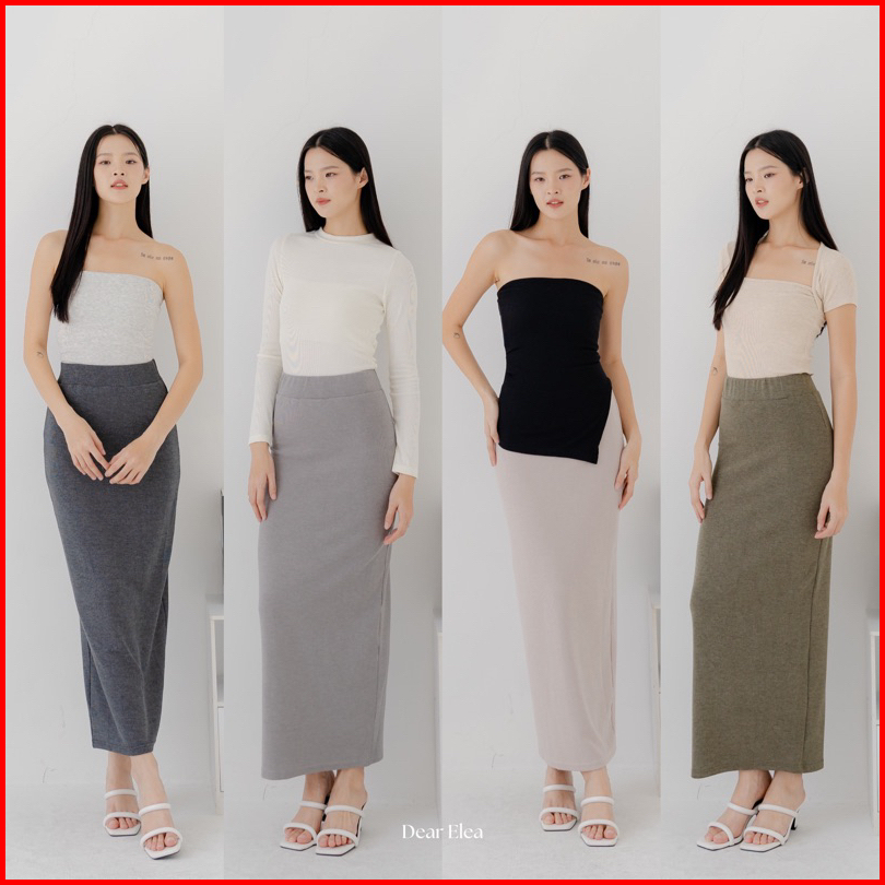 Dear Elea - Sora Skirt Rib Knit Midi Skirt Maxi Skirt Rok Wanita Panjang Rok Span Hitam