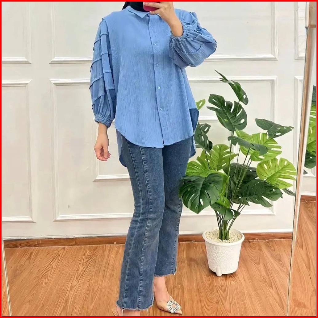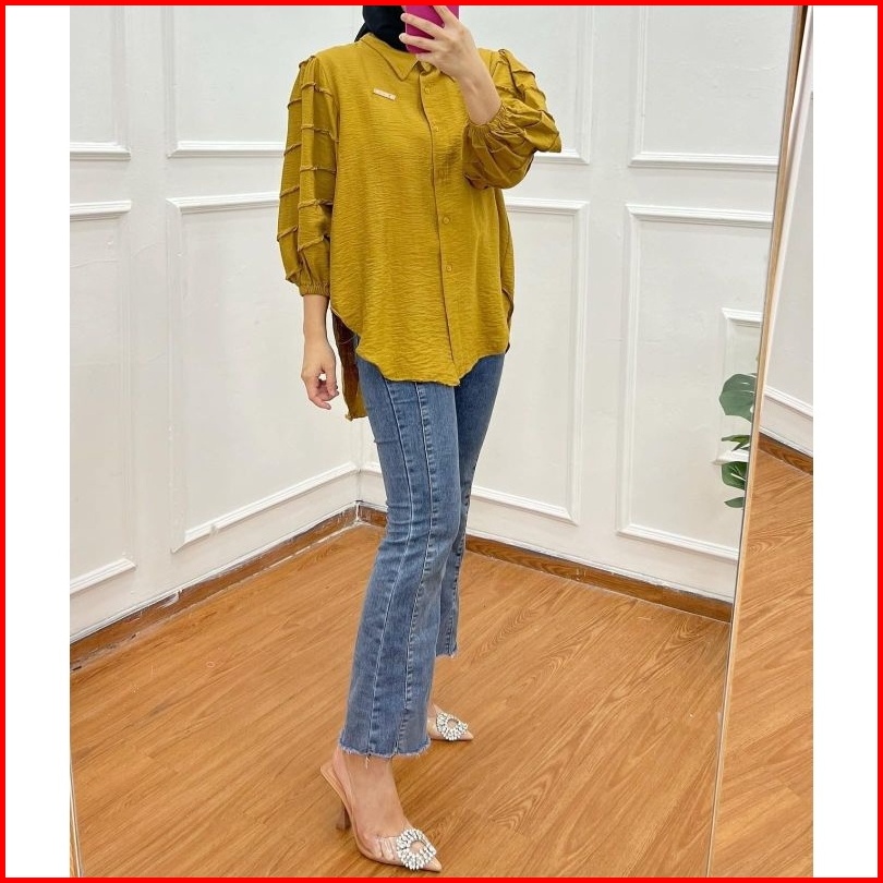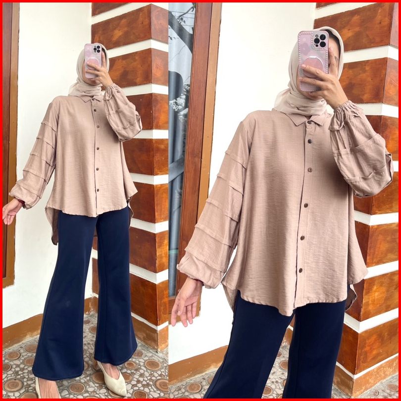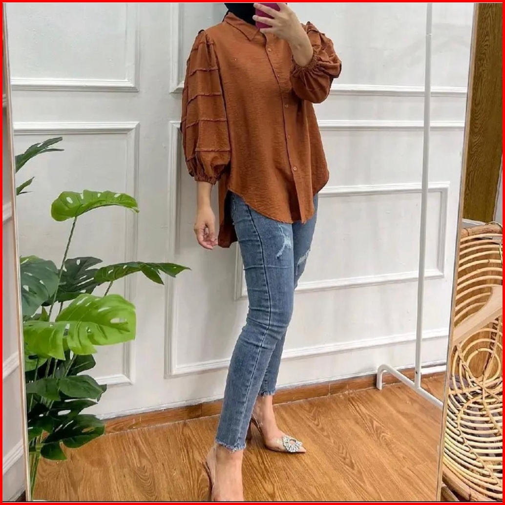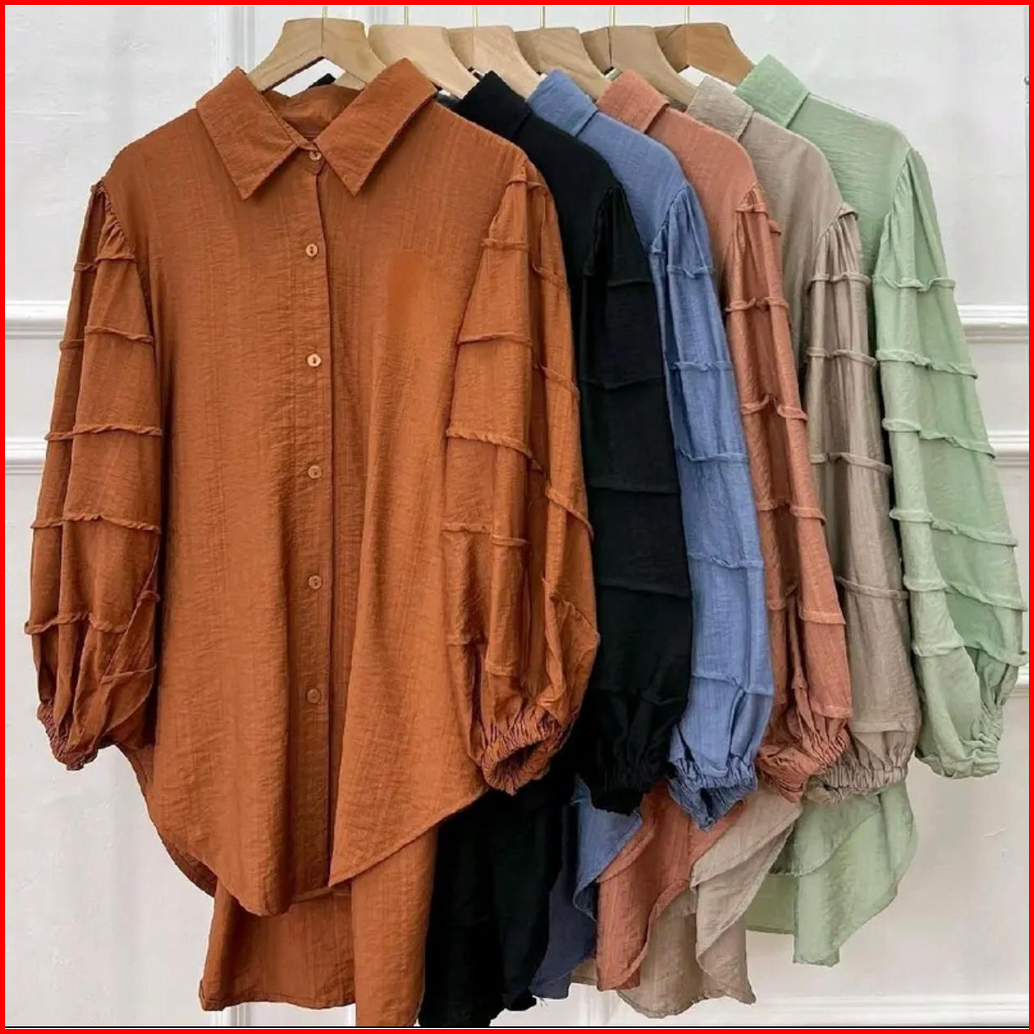 Tia Kemeja Polo Linen Wanita Tina Kemeja Lengan Balon