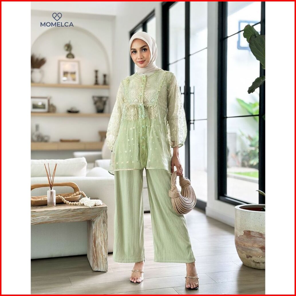 Momelca - Hiza Knit Green Pants Bawahan Wanita Celana Wanita Size 1 - Lp 104cm