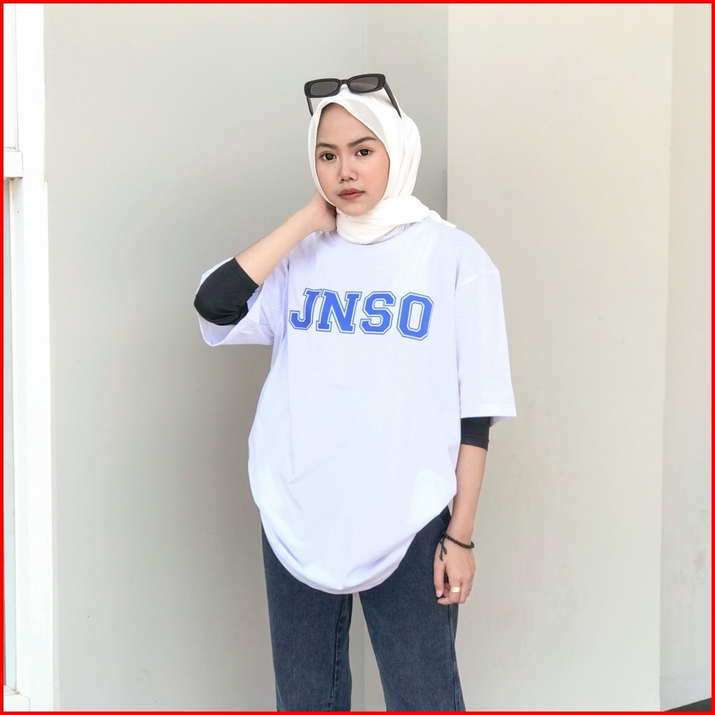Jiniso Kaos Oversize T-shirt Classic Putih Jnso Blue