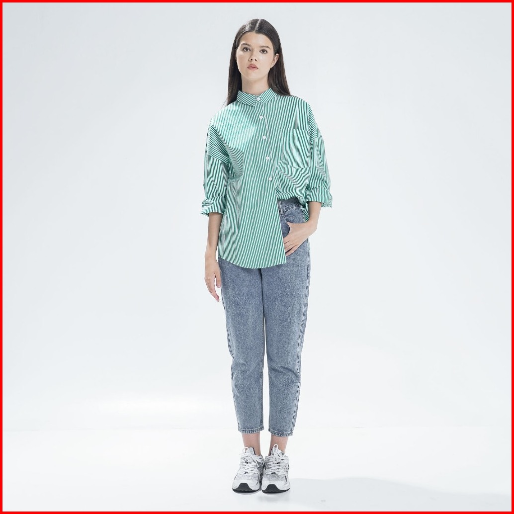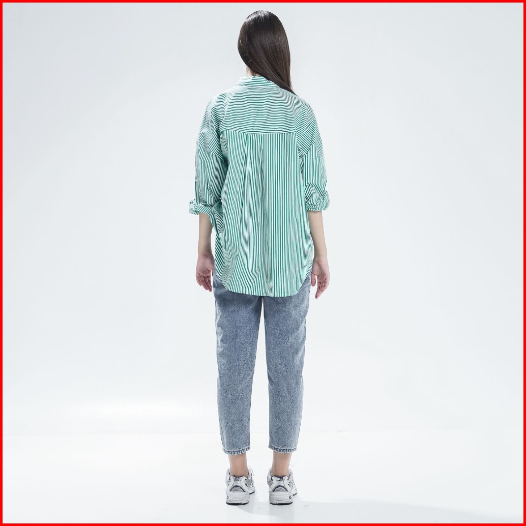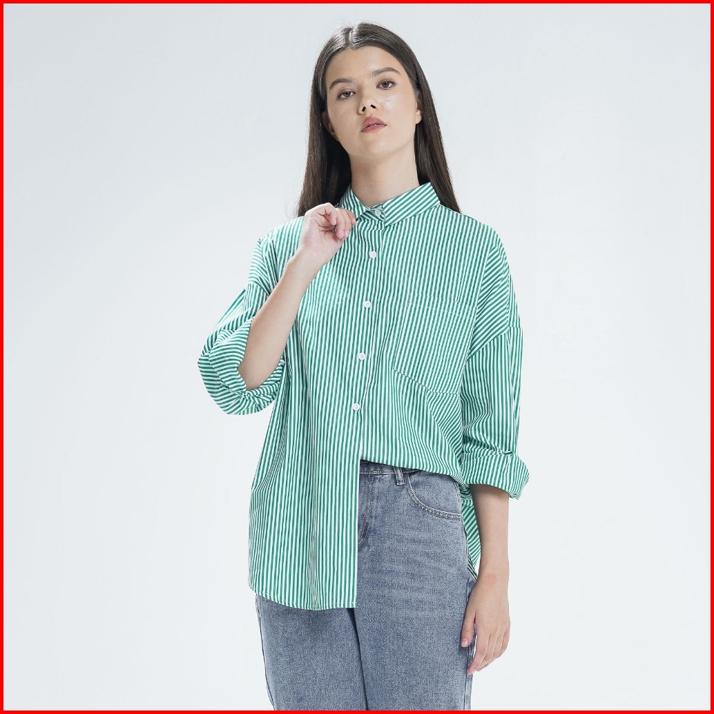 This Is April Atasan Kemeja Wanita Striped Lengan Panjang Amanda Top Green Restock