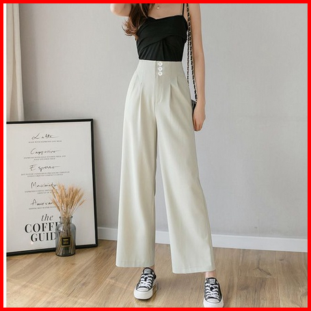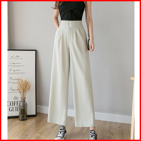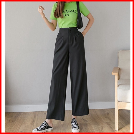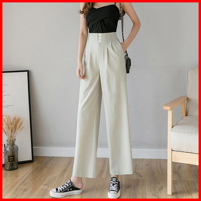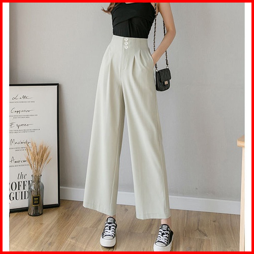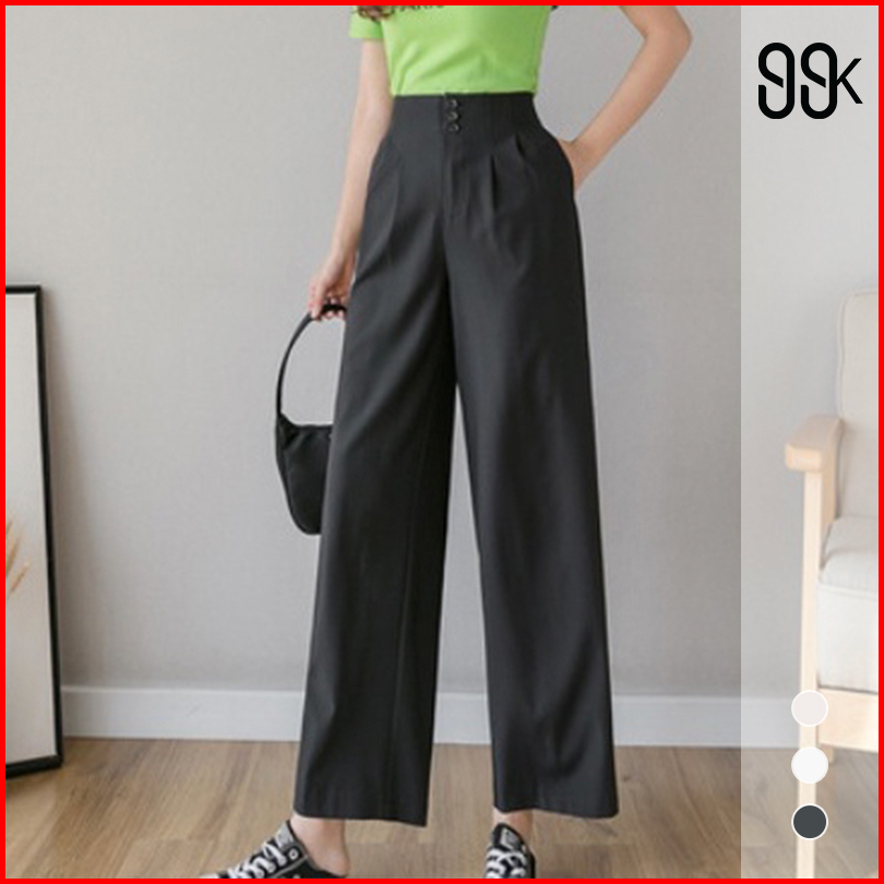 Premium99koutlet Celana Panjang Kulot Casual Wanita Loose Highwaist Wide Leg Button Plain S M L 7269 Women Long Pants Pi