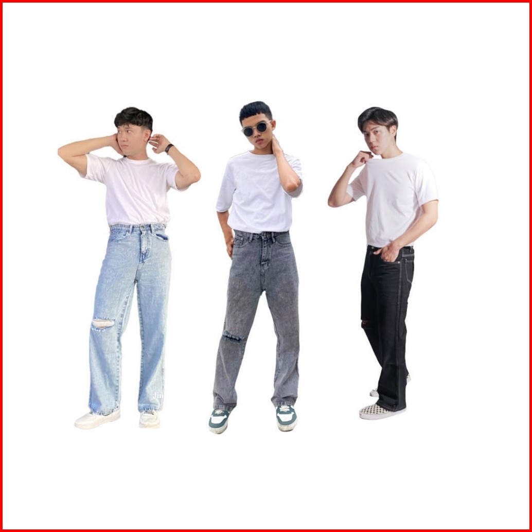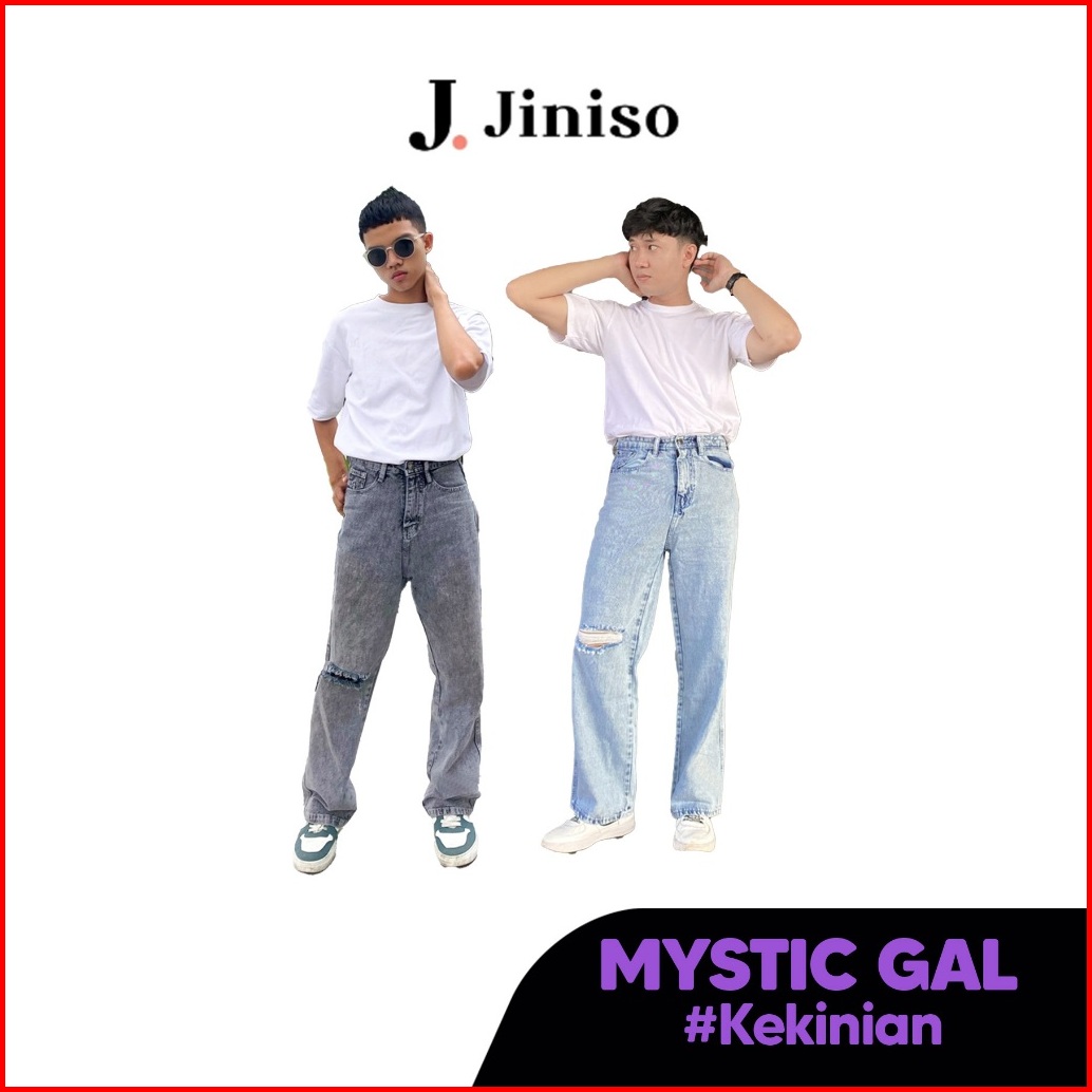 Jiniso Denim Pria Loose Ripped Jeans