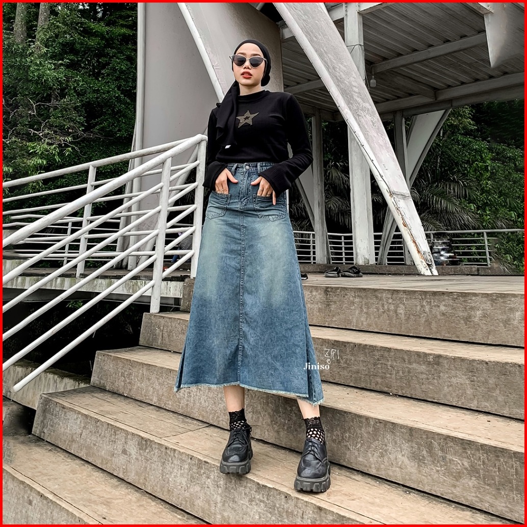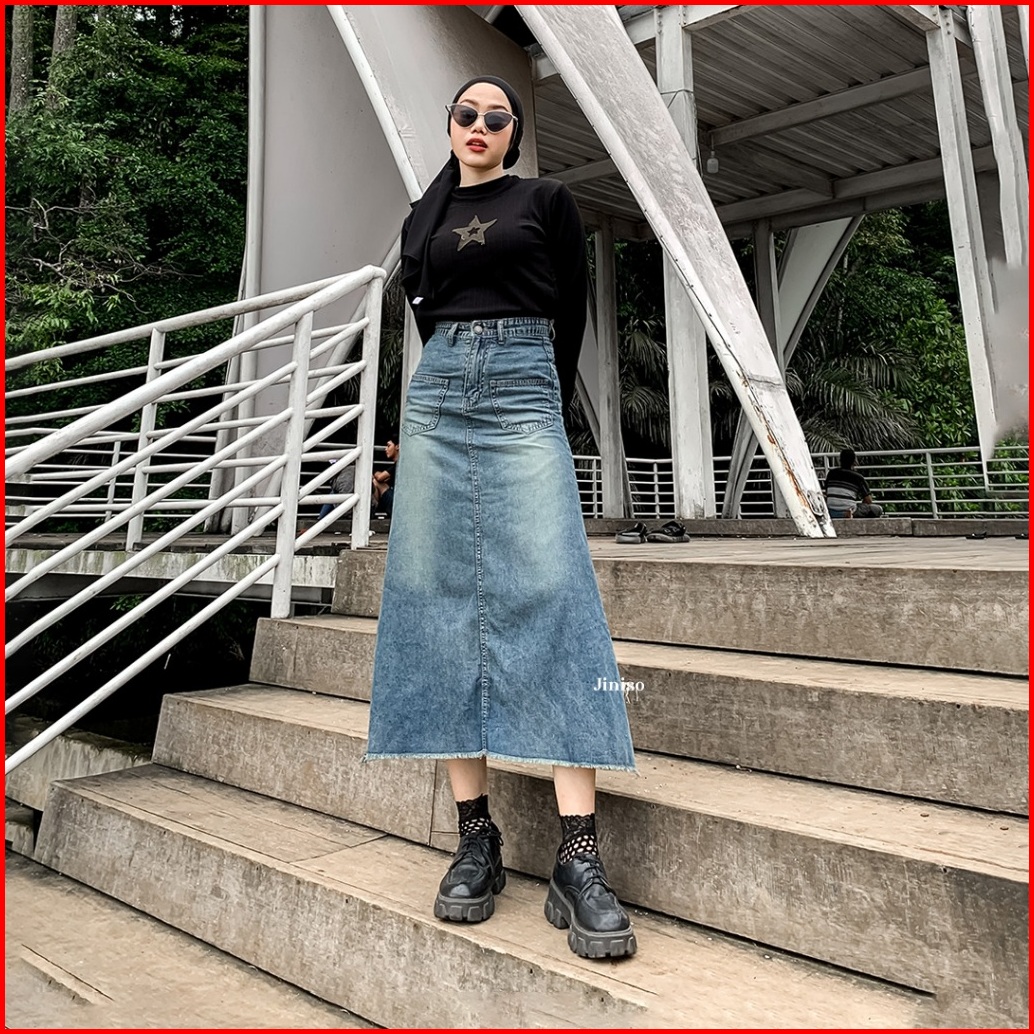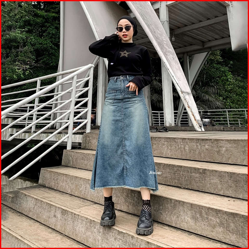 Jiniso - Highwaist Rok Mermaid Jeans Panjang 905 Seventy