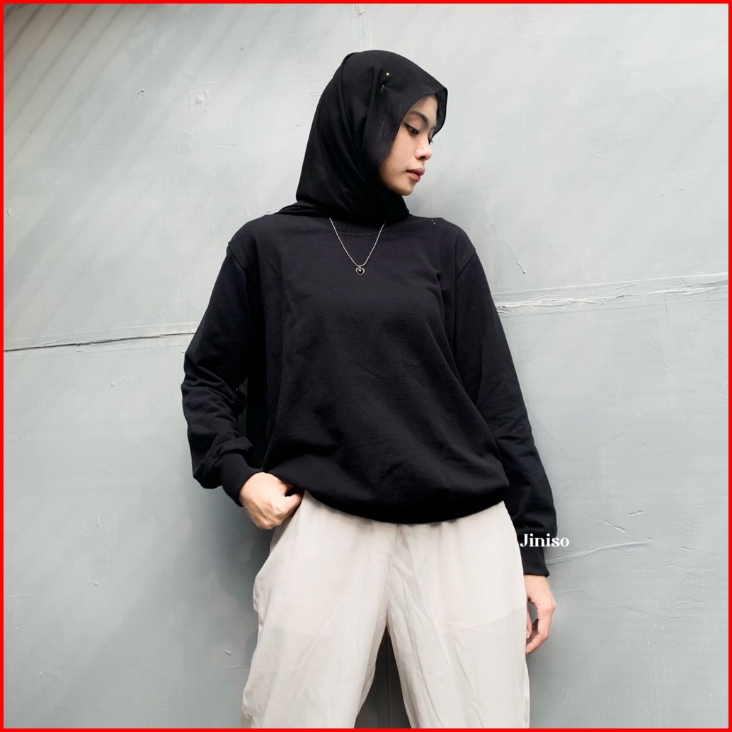 Jiniso - Active Sweater Jet Black Oversize Loose Crewneck