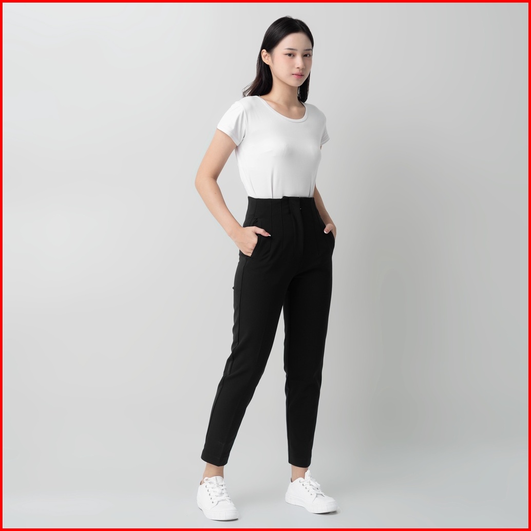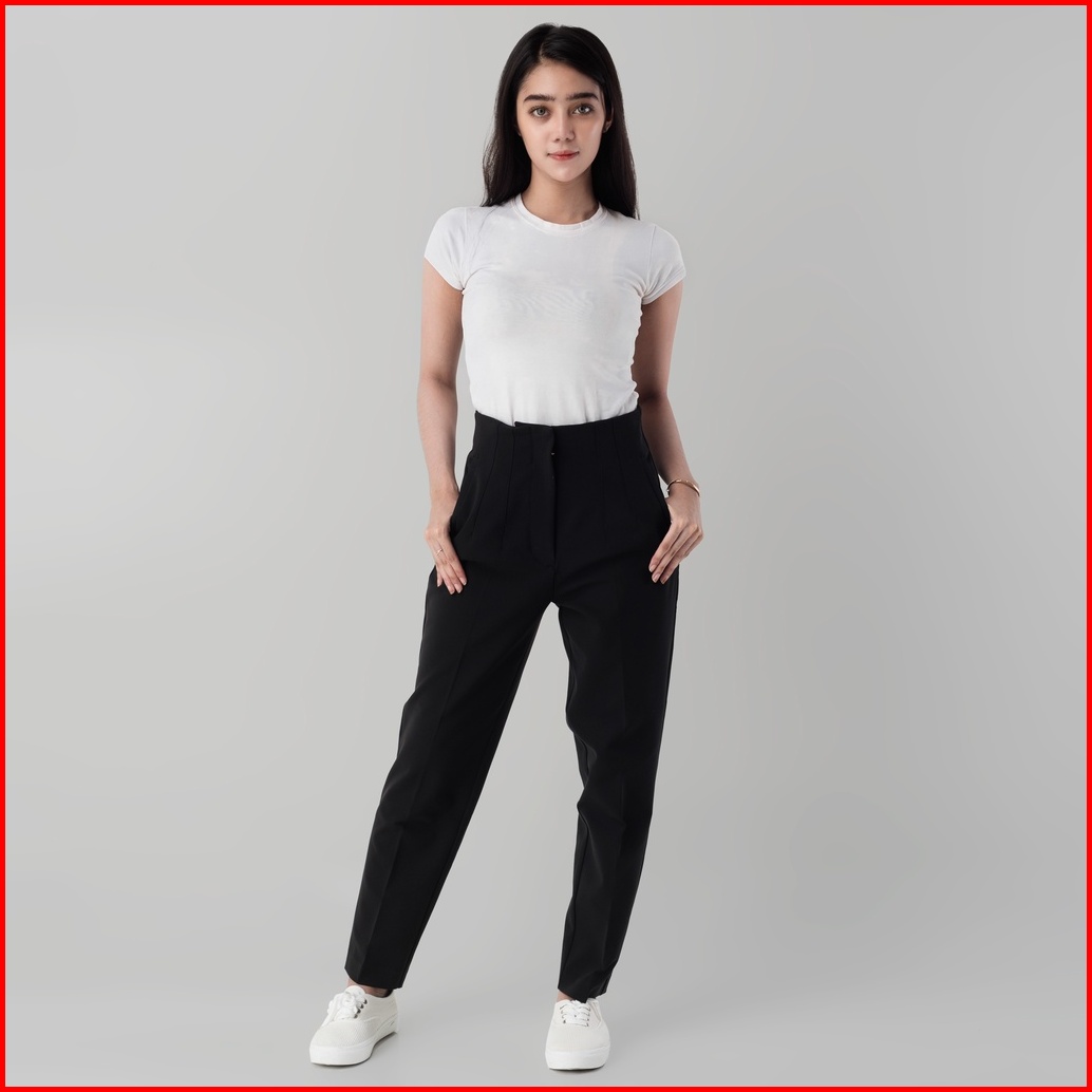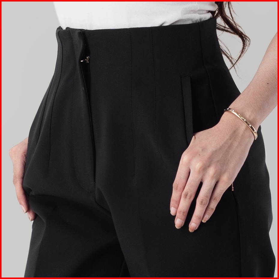 Benhill Celana Aerum Wanita High Waist Pants Pocket Stretch Black 853-39245