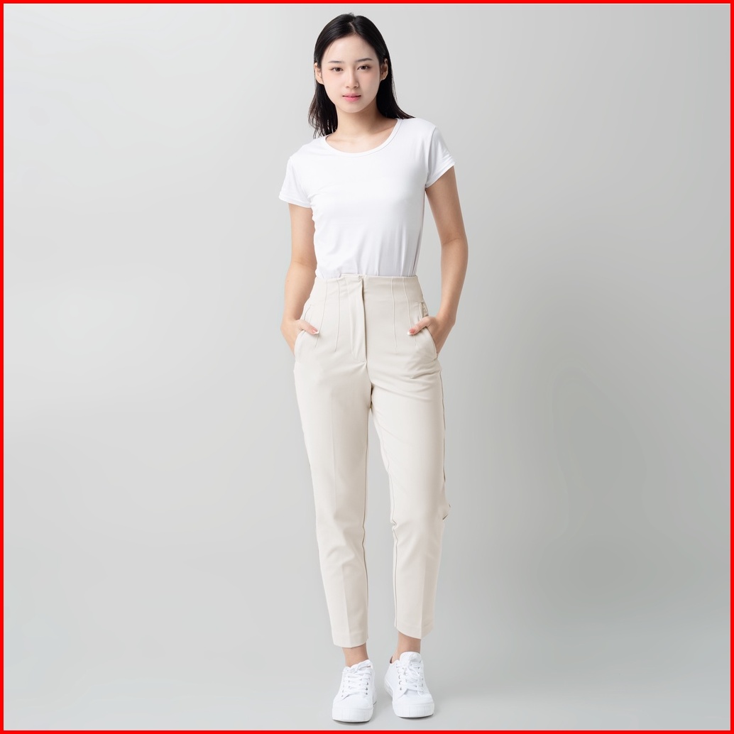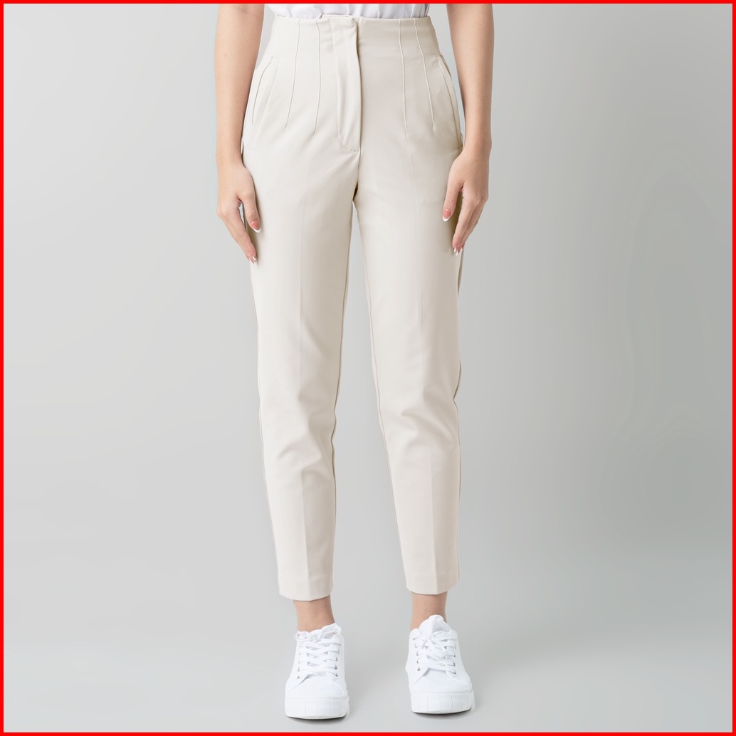 Benhill Celana Aerum Wanita High Waist Pants Pocket Stretch Off White 860-39145