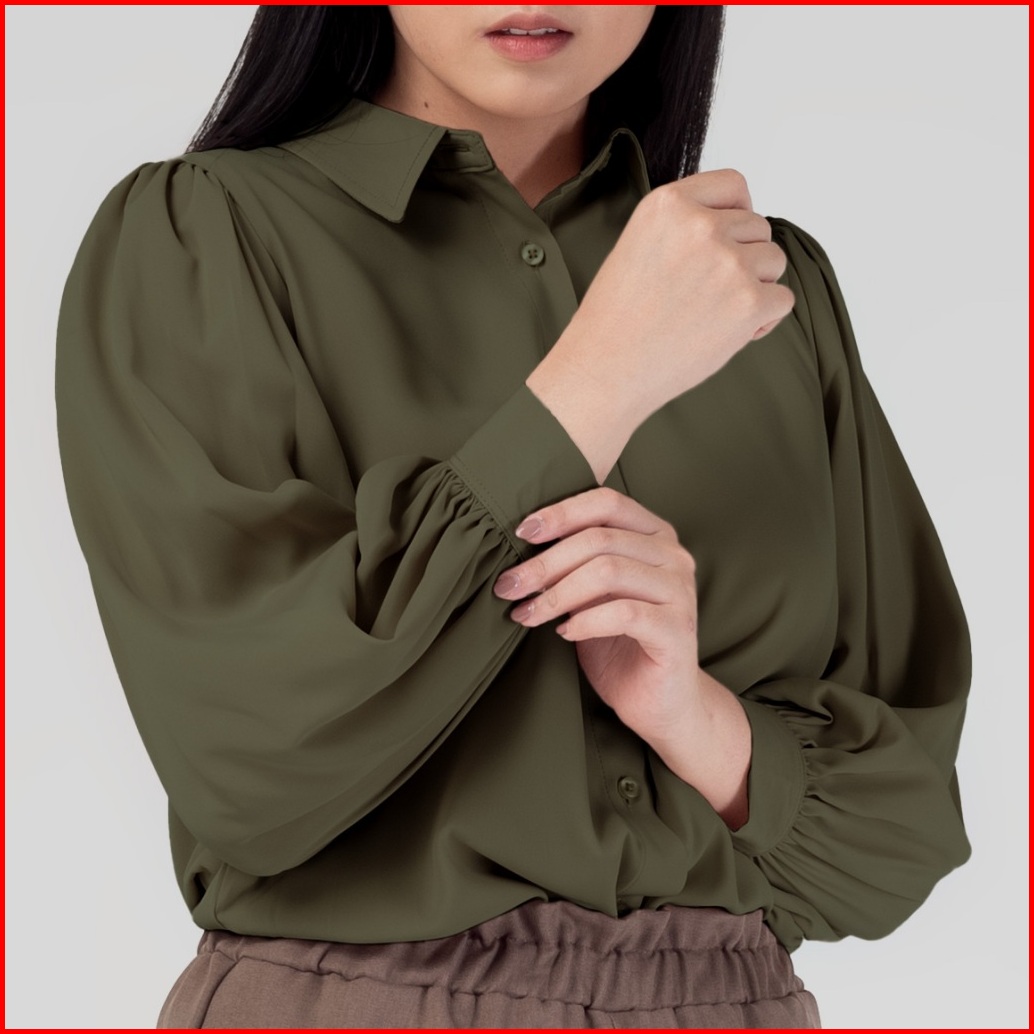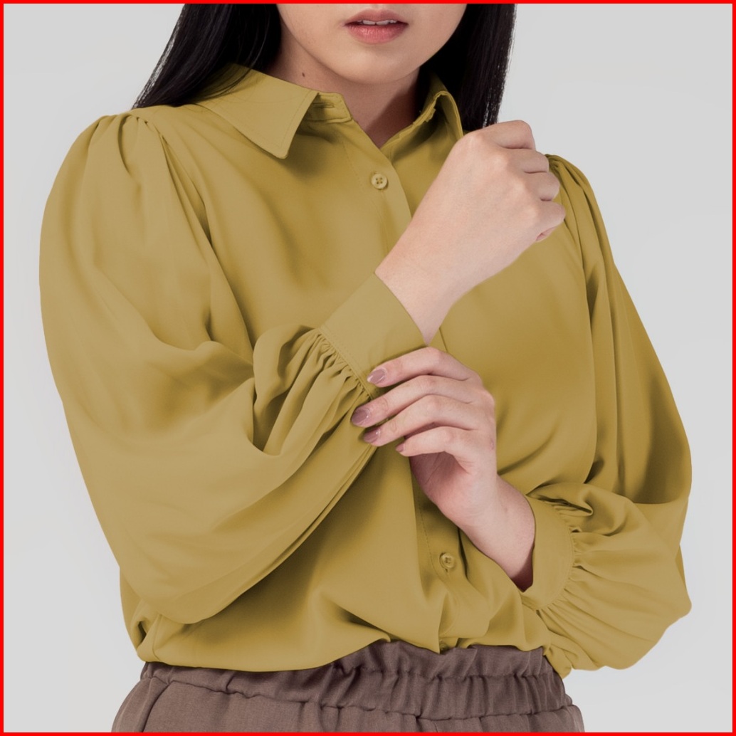 Benhill Kemeja Wanita Seori Tops Lengan Panjang Puff New Colors