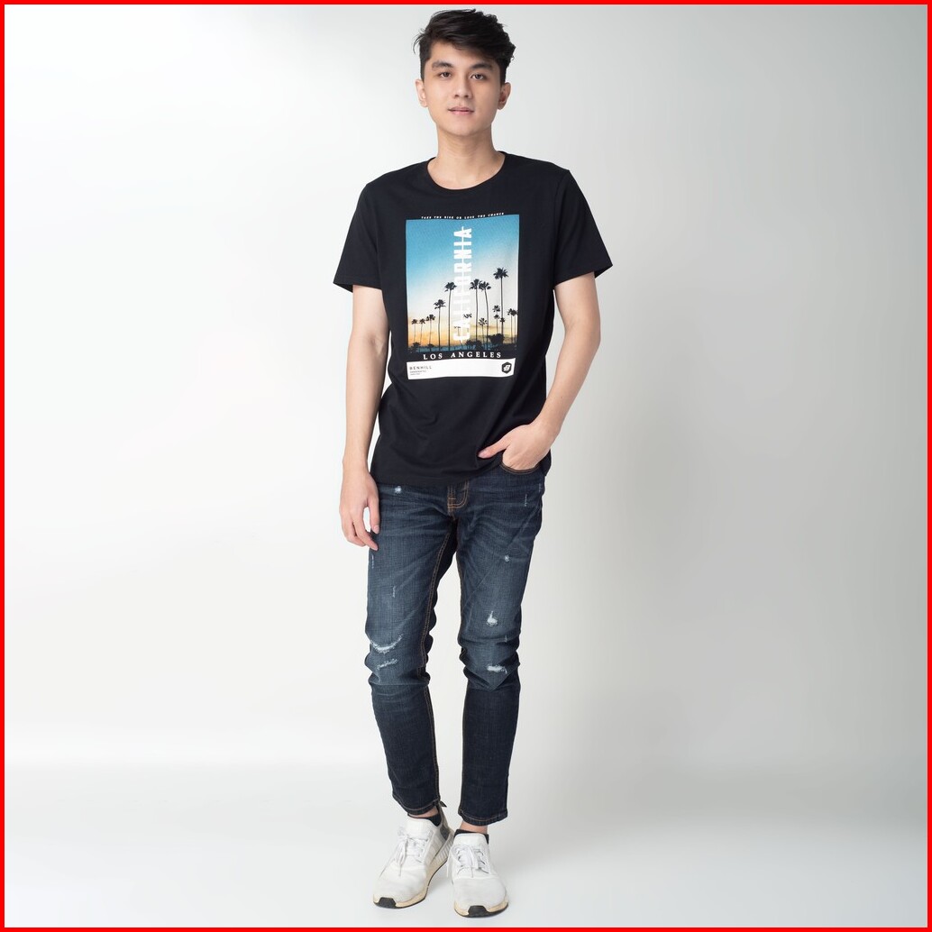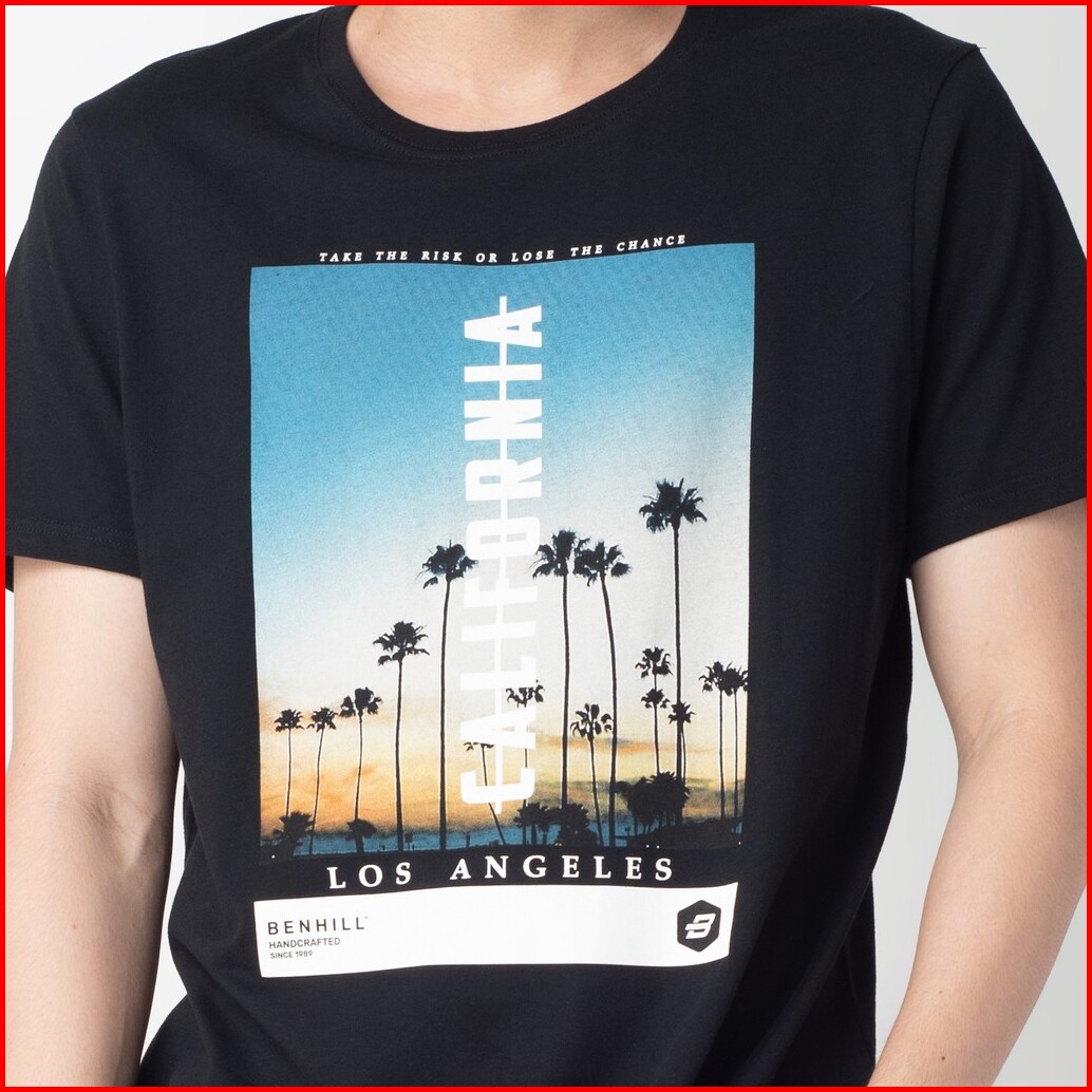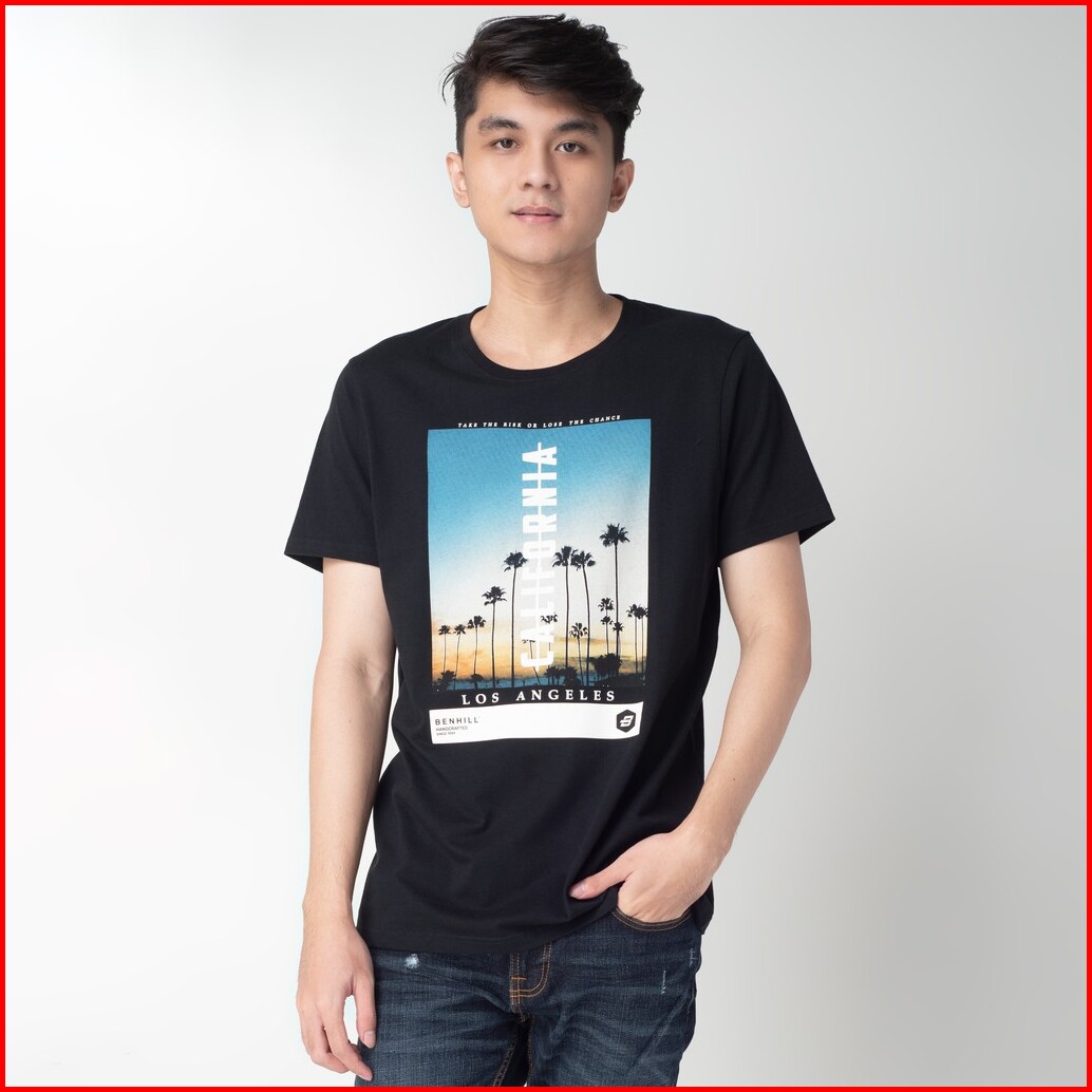 Benhill T-shirt Pria Grafis Katun 30s Combed Pendek Hitam 321-358-35268