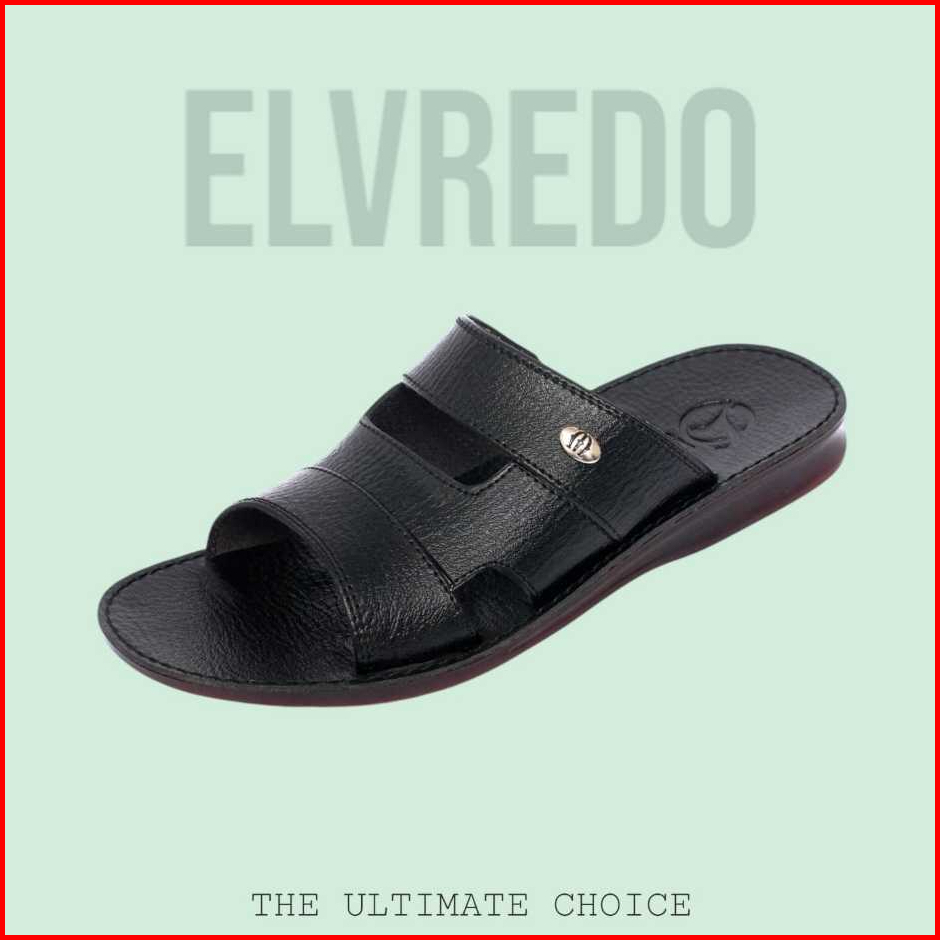 Elvredo - Sandal Kulit Pria Dewasa Sol Karet Anti Slip Sandal Bapak-bapak Slop Casual Stylish K