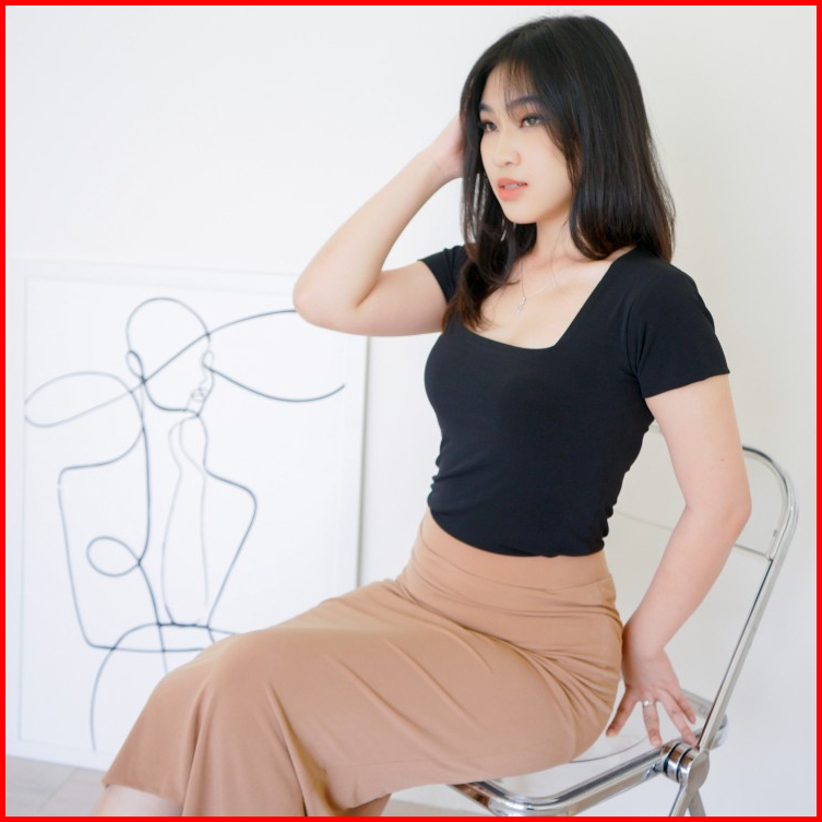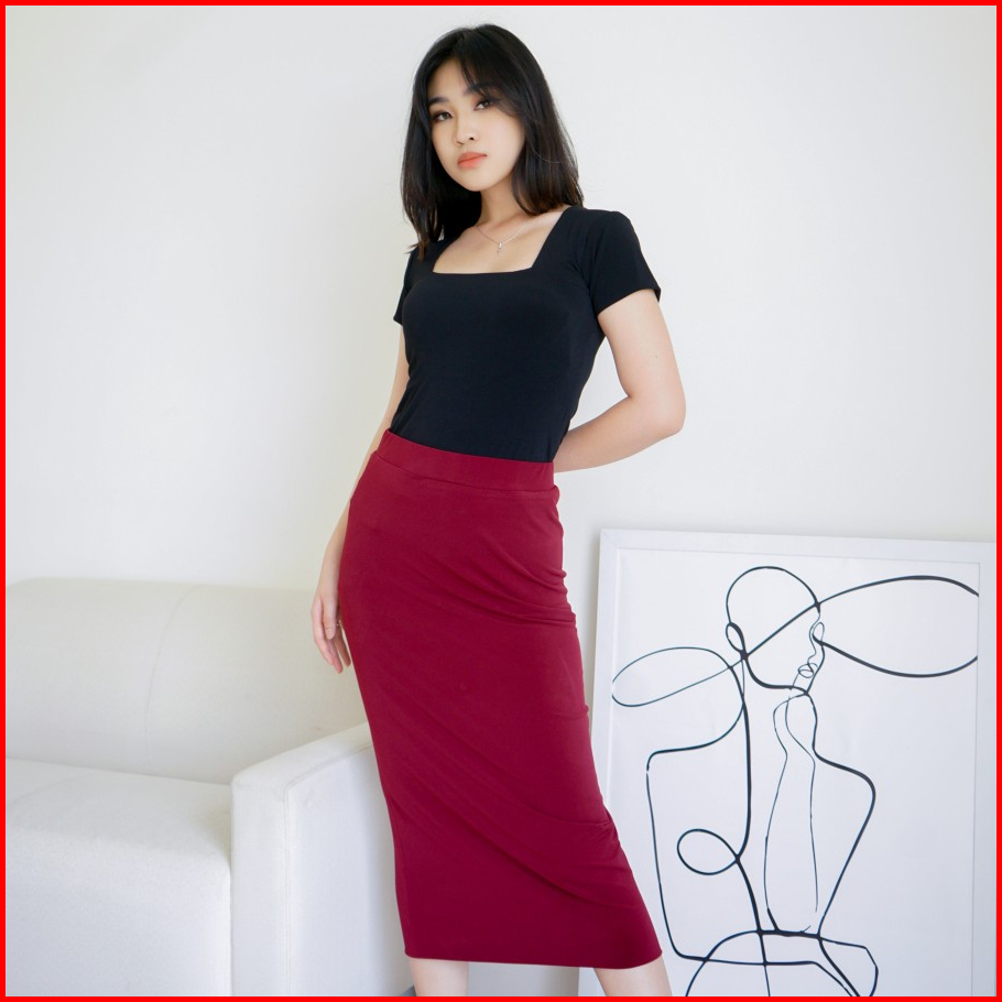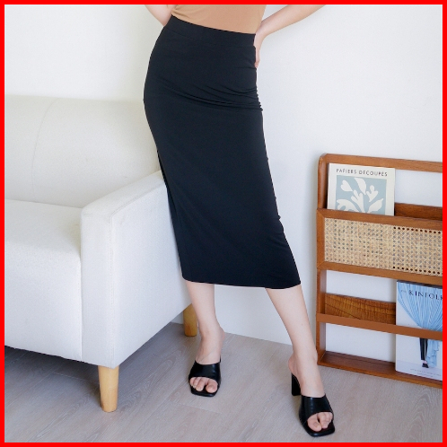 Nzinga Gamze Rok Midi Polos Wanita Body Fit - Skirt Basic Elegan Kekinian Ukuran S - Xxl