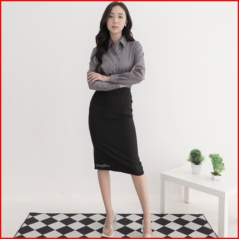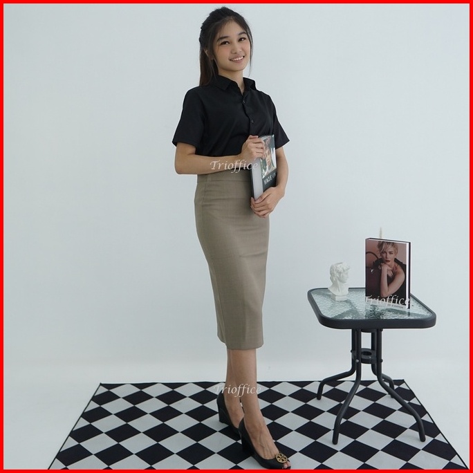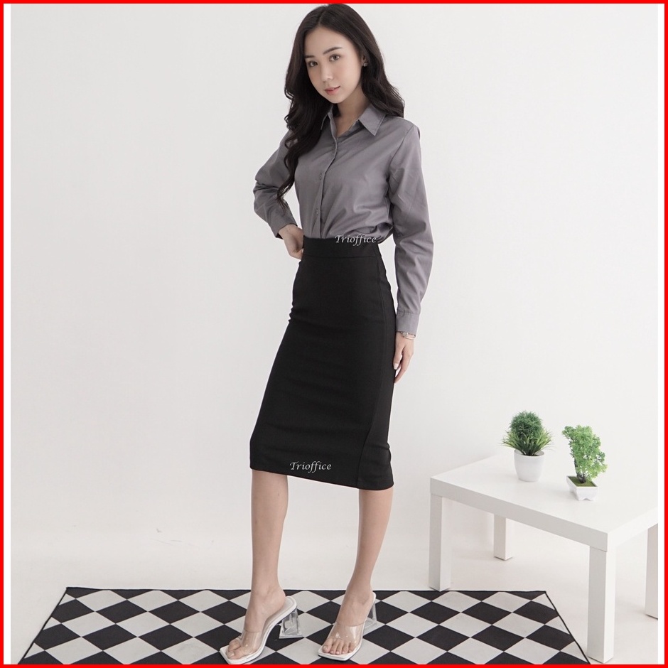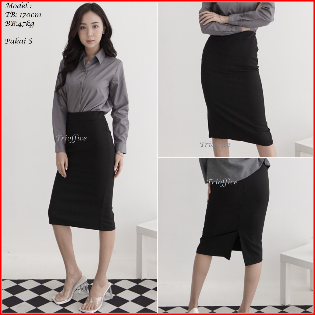 Rok Span Hitam Kerja Formal Polos Midi Sebetis 7 8