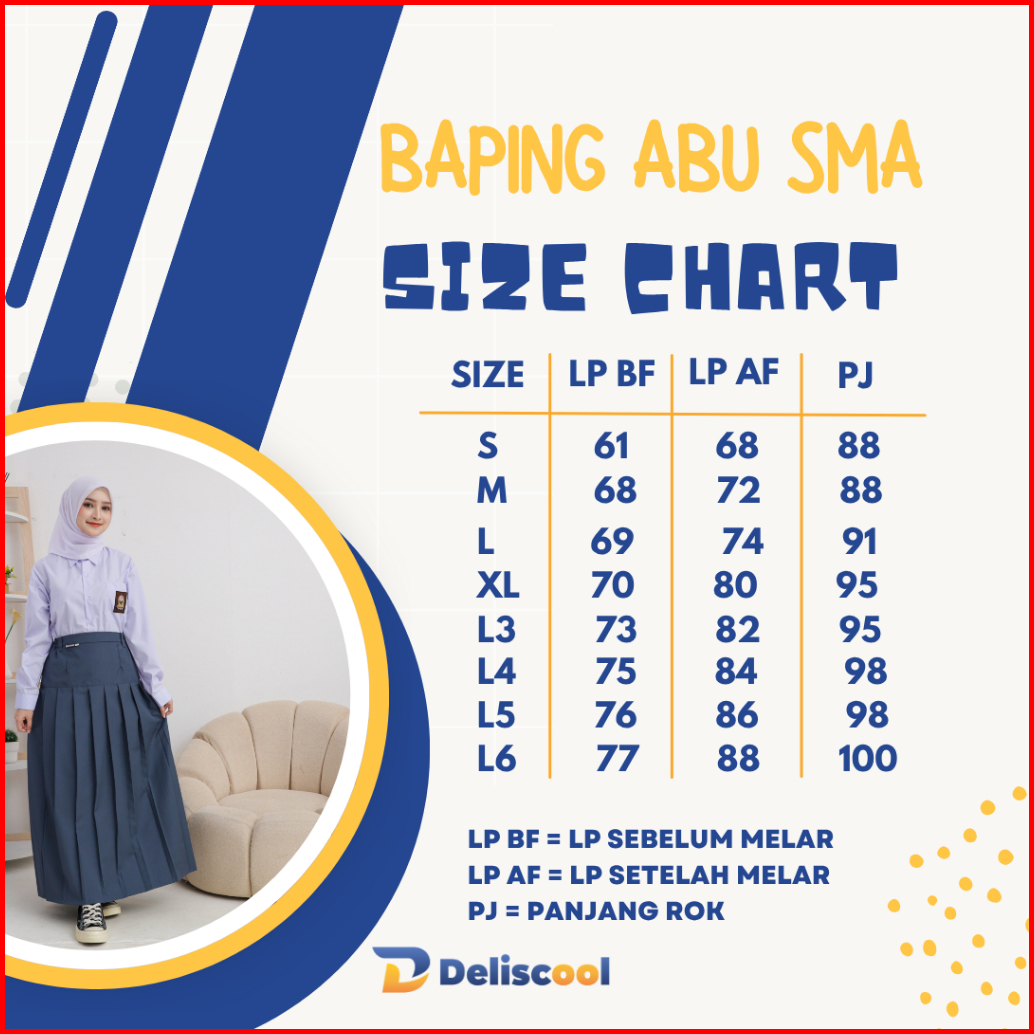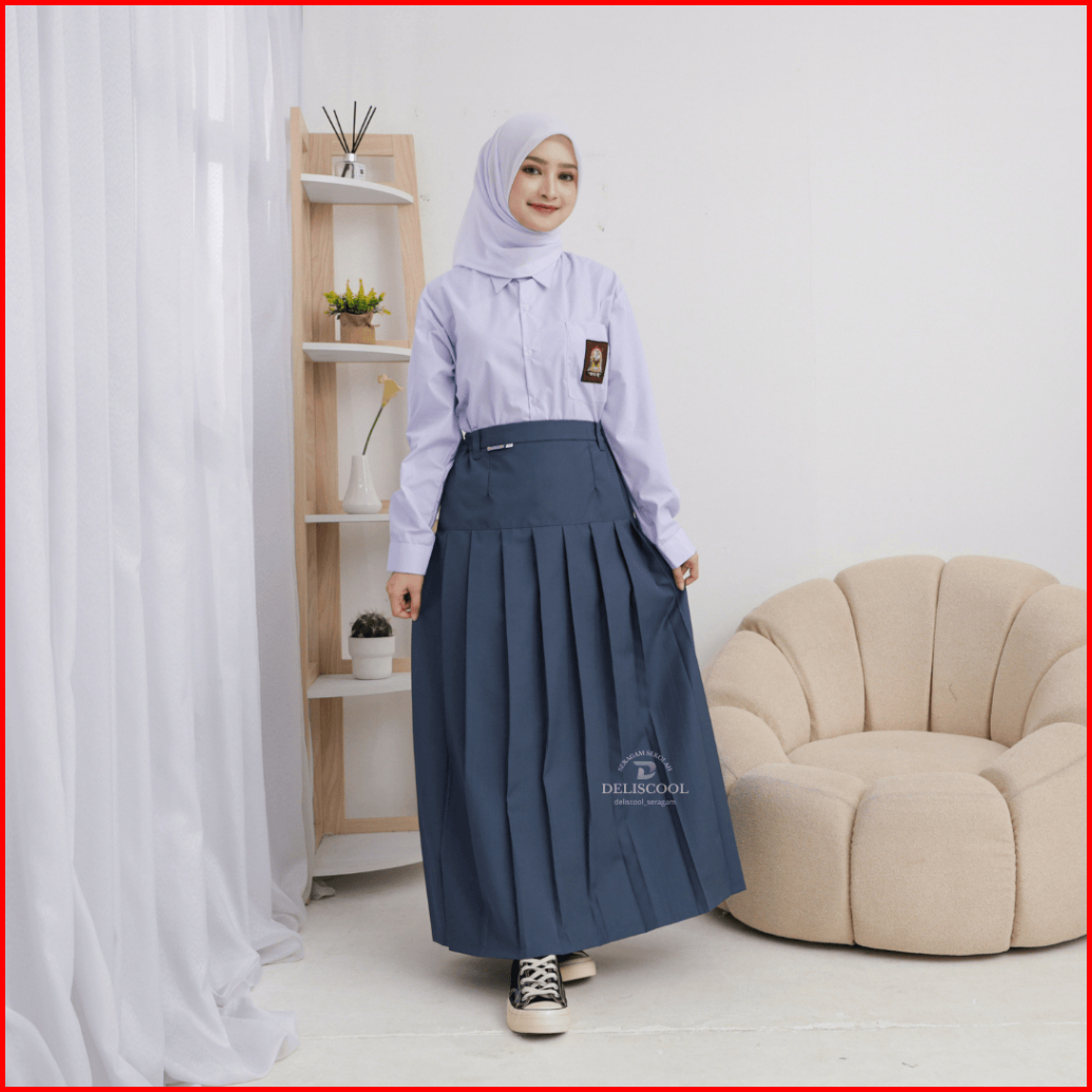 Deliscool Seragam Sma Rok Panjang Rempel Bawah Pinggang Abu - Seragam Sekolah - Rok Rempel - Rok Sma