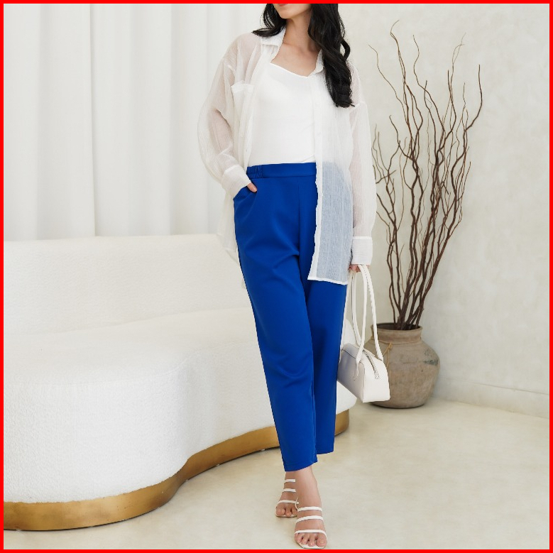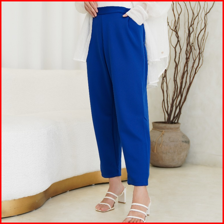 Momelca - Poppy Blue Electric Basic Pants Bawahan Wanita Celana Panjang Wanita