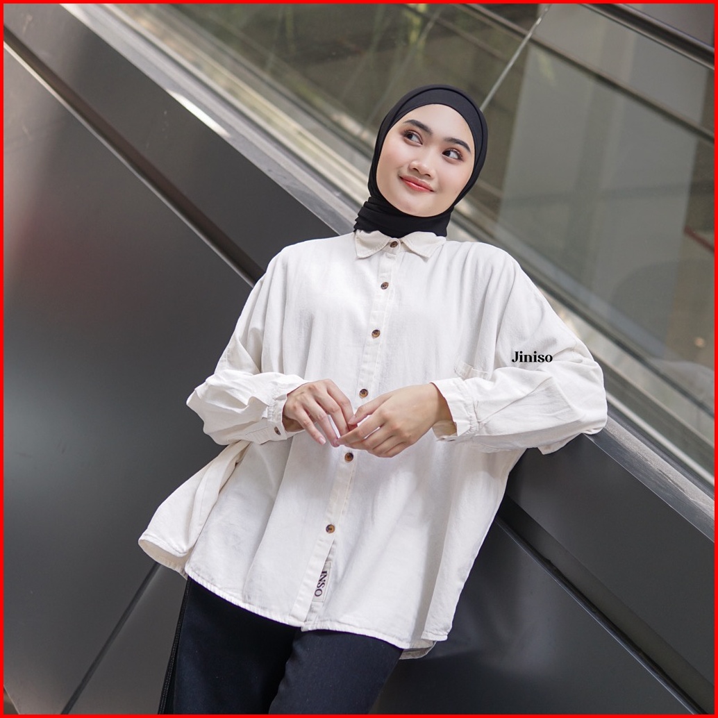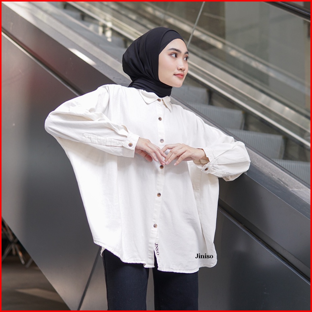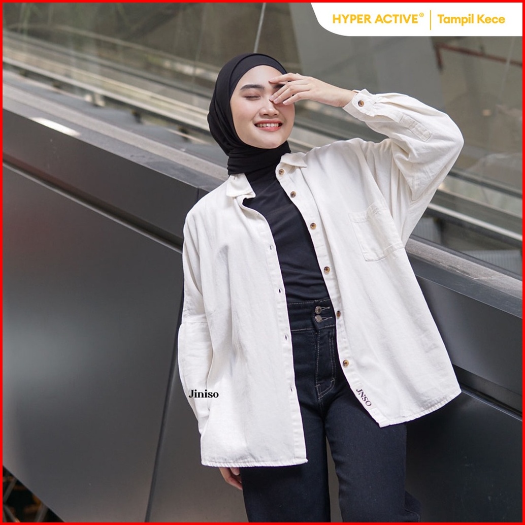 Jiniso Kemeja Oversize Shirt White Angel Hyper Active