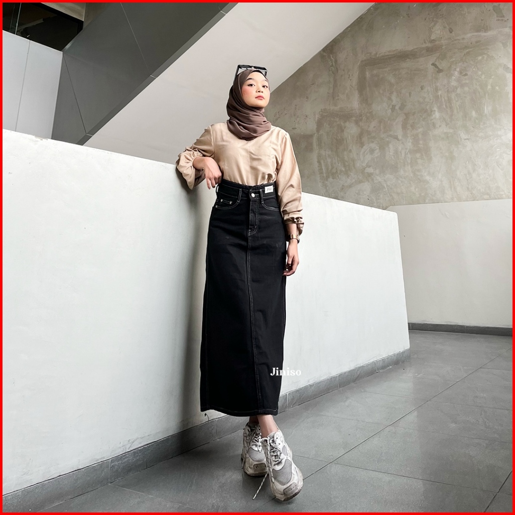 Jiniso - Highwaist Rok Slit Jeans Panjang 973 Seventy