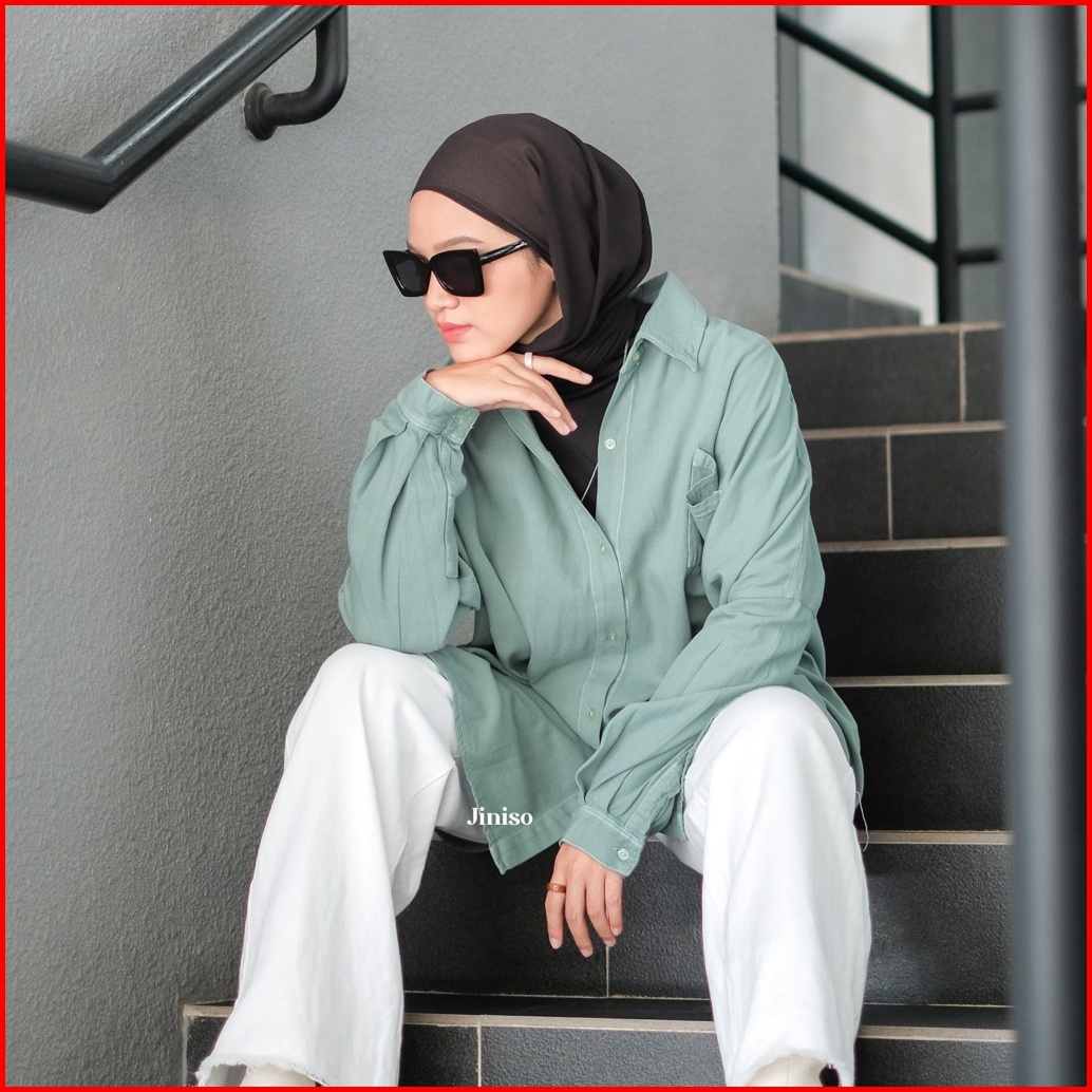 Jiniso Kemeja Oversize Shirt Matcha Mint Hyper Active