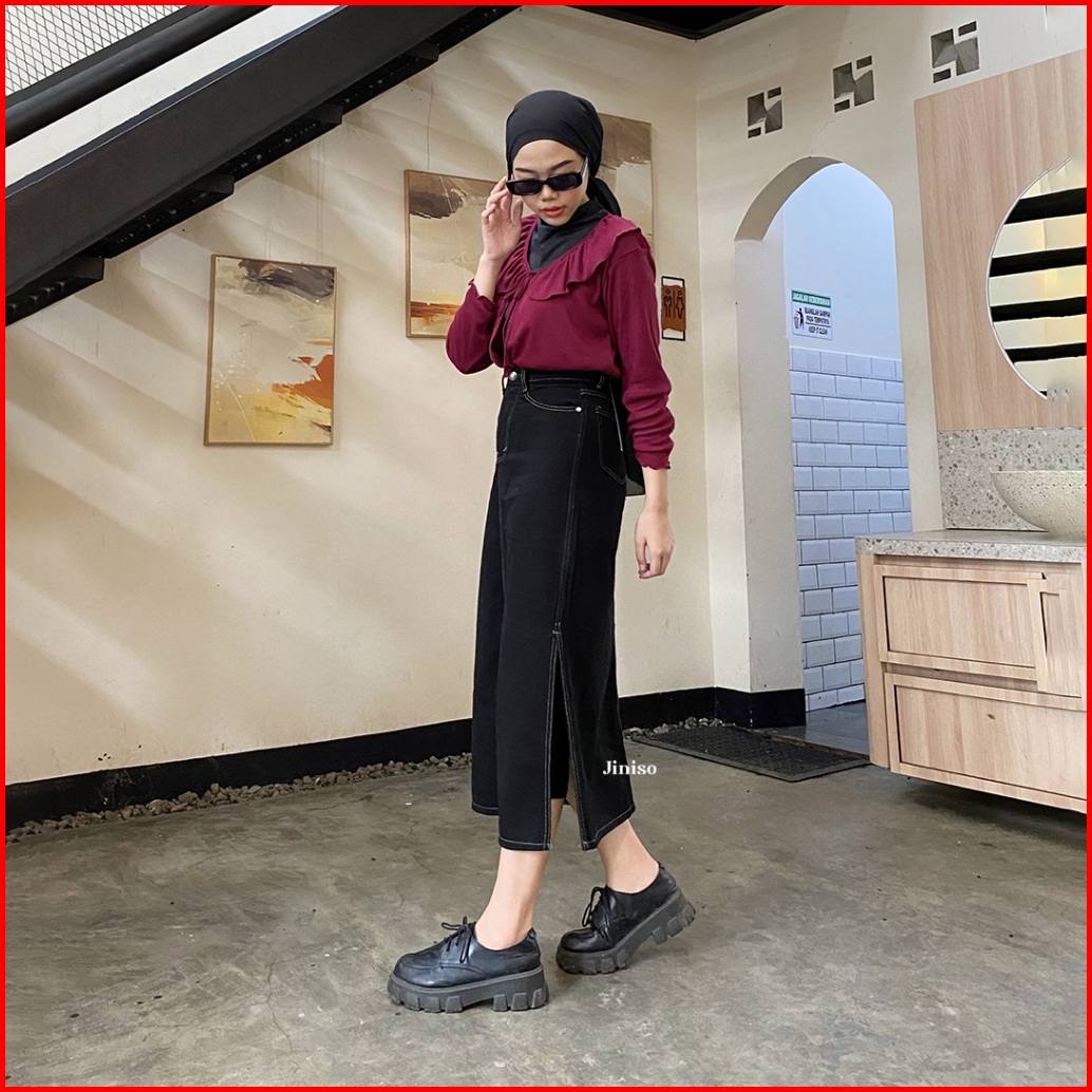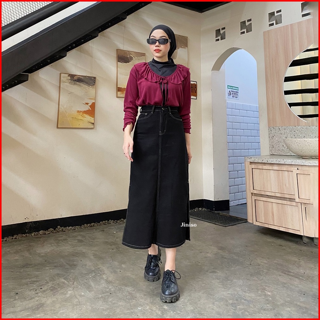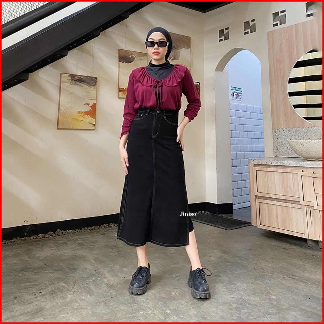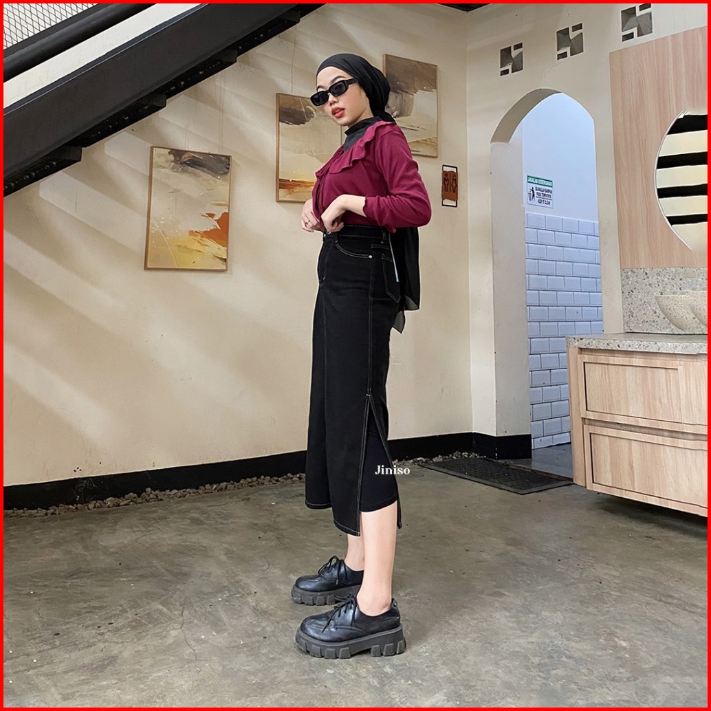 Jiniso - Highwaist Rok Slit Jeans Panjang 978 Seventy