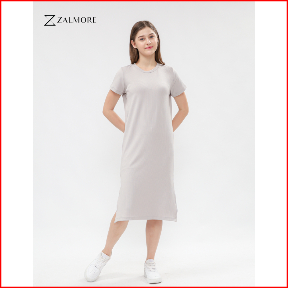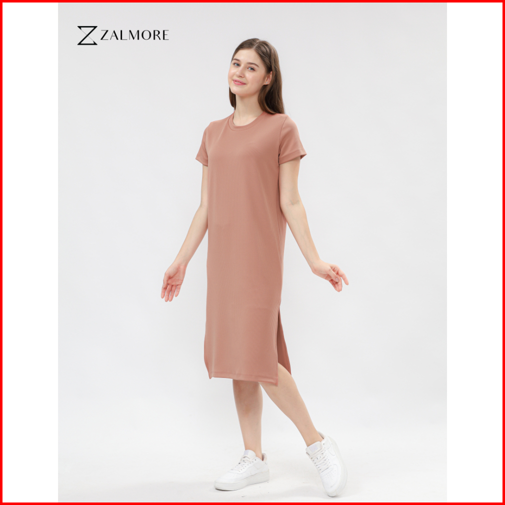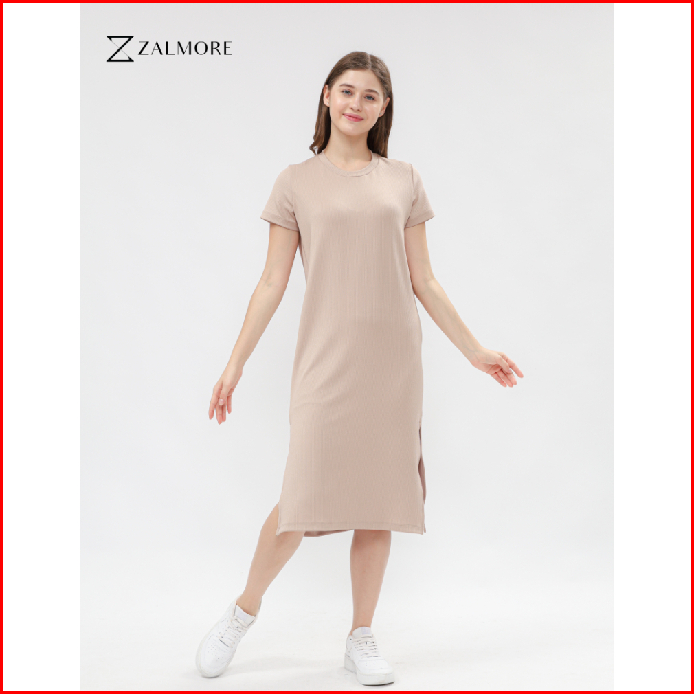 Zalmore Basic Midi Dress With Slit Premium Knit