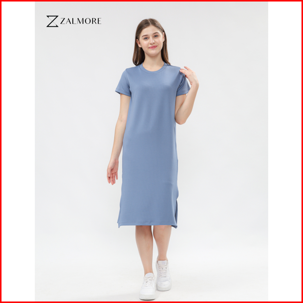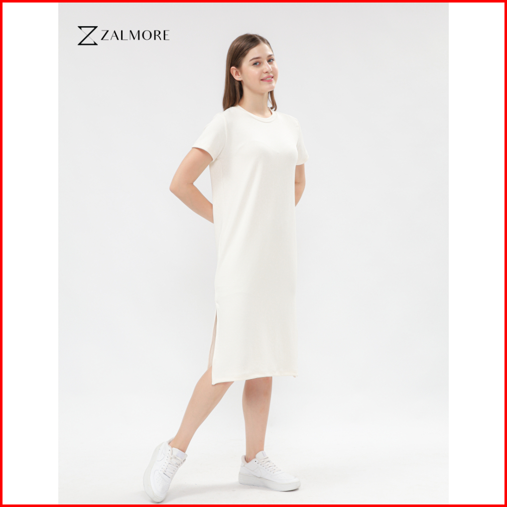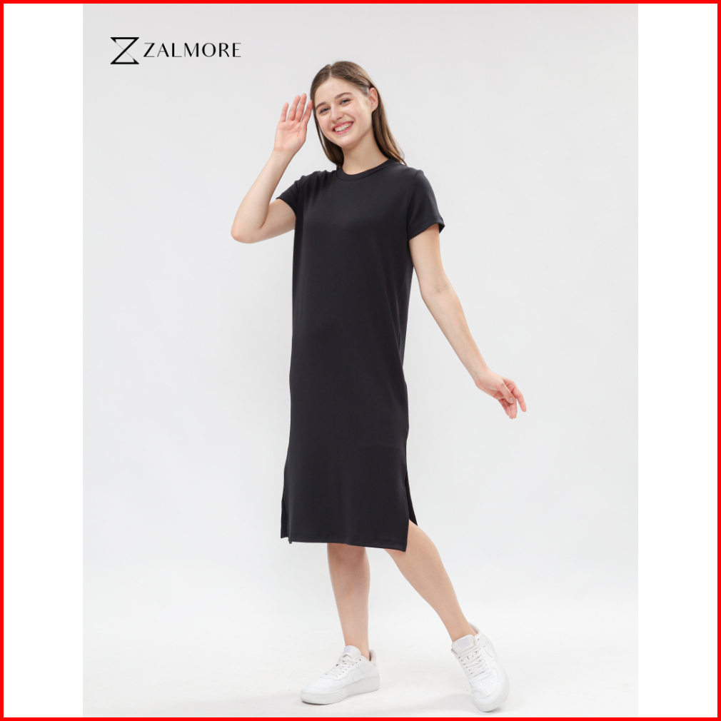 Zalmore Basic Midi Dress With Slit Premium Knit