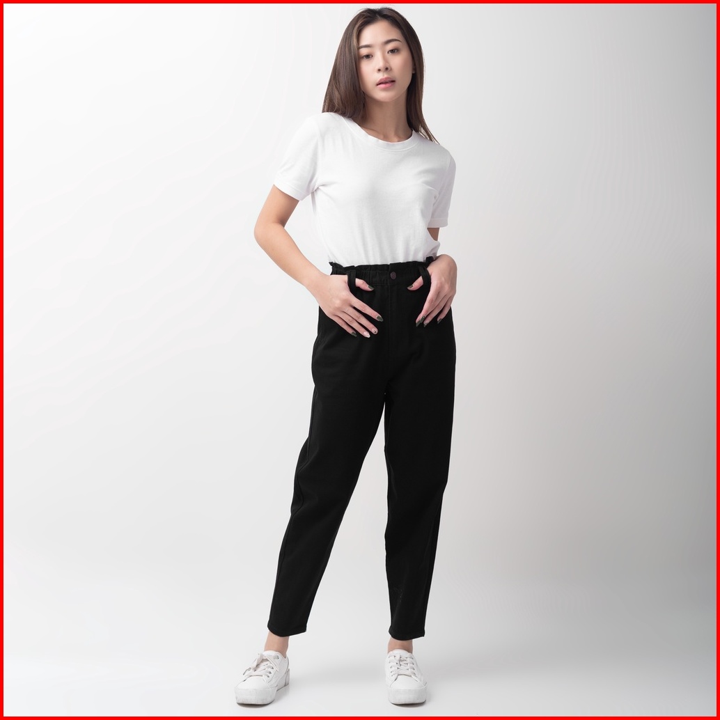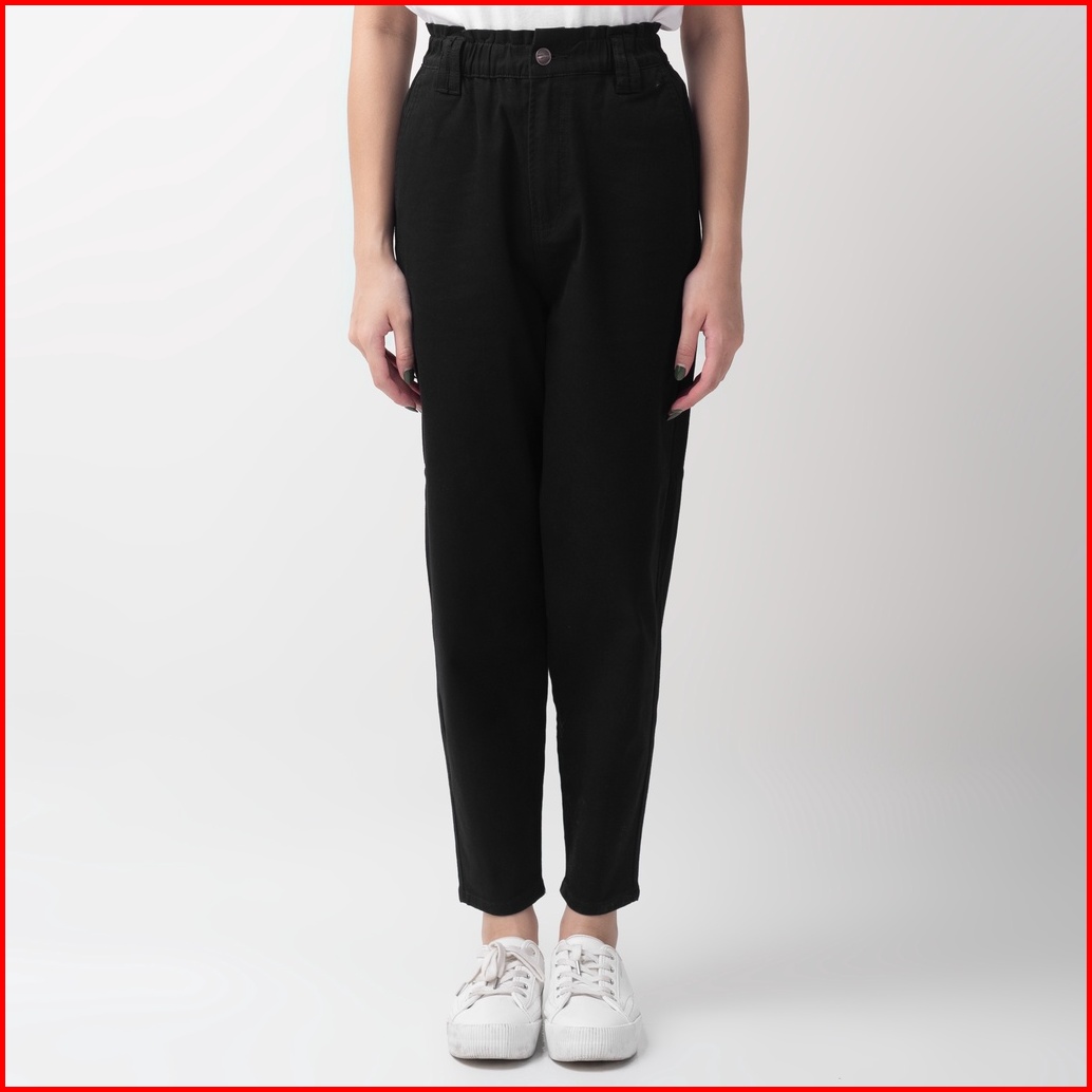 Benhill Celana Minji Panjang High Waist Pinggang Karet Black 780-989-22255