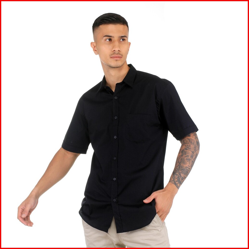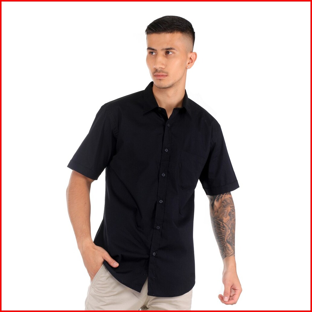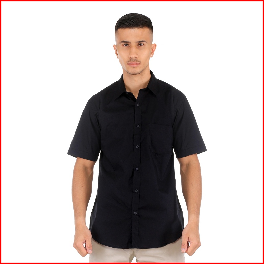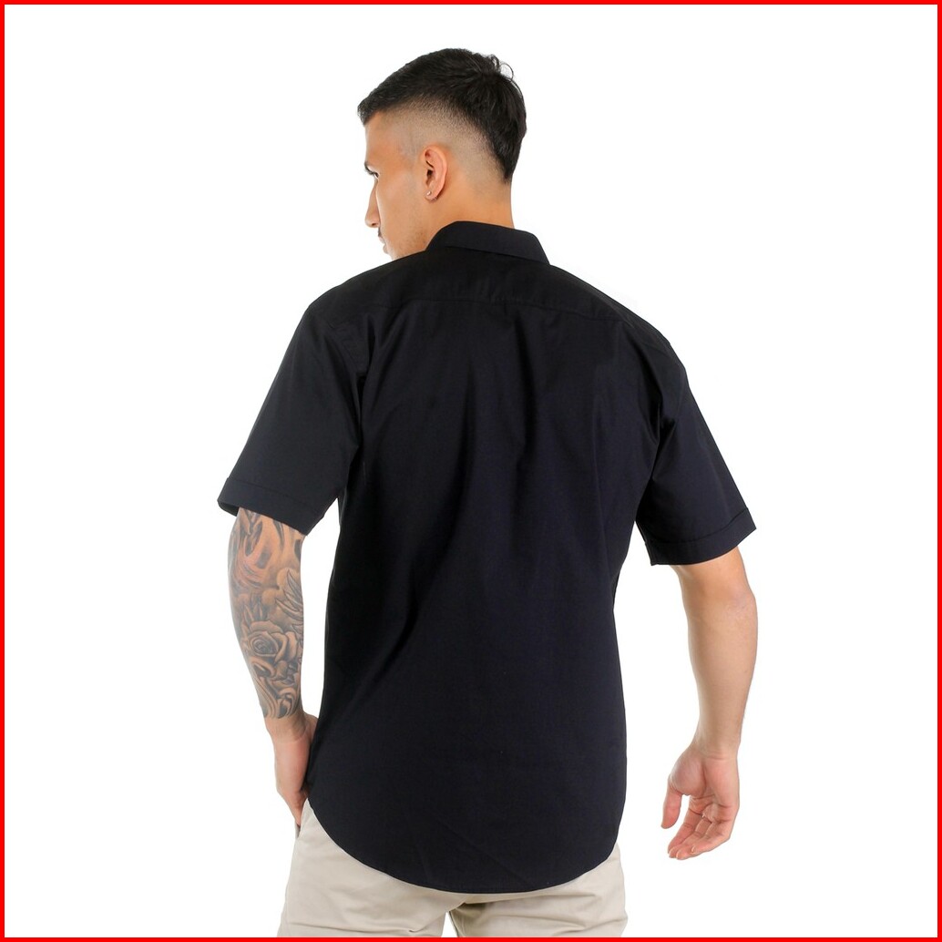 Benhill Kemeja Basic Formal Pria Pendek Katun Poplin Black 27359-16234